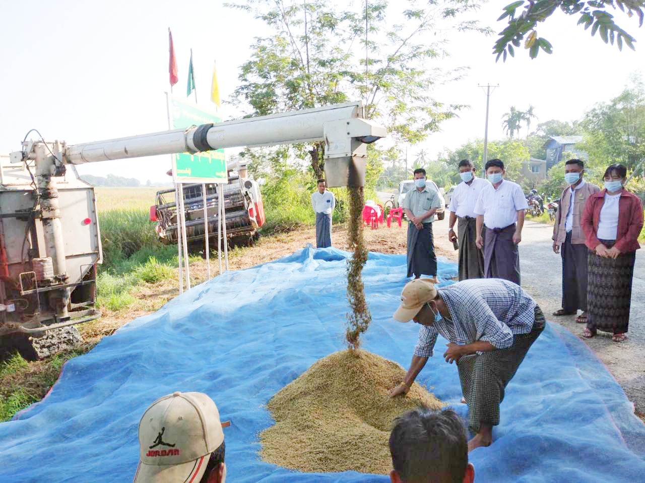 ပဲခူးတိုင်းဒေသကြီး၊ သာယာဝတီခရိုင်၊ သာယာဝတီမြို့နယ်၊ သင်တောရိုးကျေးရွာအုပ်စု၊ ဂွေးချောင်းကျေးရွာ၊ ကွင်းအမှတ် (၁၂၅၂) ဦးပိုင်အမှတ် (၁၀၈/၁) တောင်သူ ဦးထွန်းထွန်းဝင်း၏ ဆင်းသုစိုက်ခြင်း(၂)၌ စိုက်ပျိုးရေးဦးစီးဌာနမှ မိုးစပါးစံကွက်ရိတ်သိမ်းပွဲကို ယမန်နေ့ နံနက်ပိုင်းက ကျင်းပခဲ့သည်။