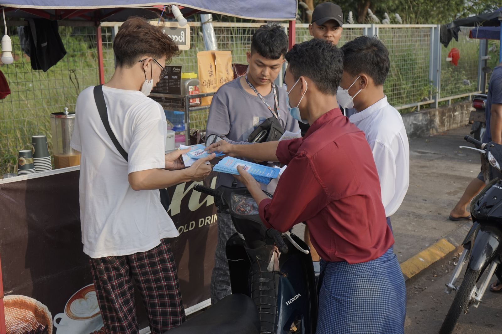 ထိုသို့ လက်ကမ်းစာစောင် ဖြန့်ဝေခြင်း လုပ်ငန်းများကိုကုန်းလမ်းပို့ဆောင်ရေး ညွှန်ကြားမှုဦးစီးဌာနနှင့် ပြန်ကြားရေးနှင့်ပြည်သူ့ဆက်ဆံရေးဦးစီးဌာန ၀န်ထမ်းများကကမ်းနားလမ်းတစ်လျှောက်ရှိ မော်တော်ယာဉ်မောင်းနှင်သူများထံသို့ အခမဲ့ လိုက်လံဝေငှပေးခဲ့ပြီး အဆိုပါ လက်ကမ်းစာစောင်တွင် ဆိုင်ကယ်စီး ဦးထုပ်ဆောင်းရာ တွင်လိုက်နာရမည့် အကြောင်းအရာများ မော်တော်ဆိုင်ကယ် အန္တရာယ်ကင်းရှင်းရေးအတွက် လိုက်နာရမည့် အချက် ၁၀ ချက်၊ နောက်မှထိုင်စီးသူများ ဂရုစိုက်ရမည့် နည်းလမ်းများ၊ လက်ကိုင်ဖုန်း သုံးစွဲ၍ မောင်းနှင်းခြင်း မပြုကြရန်၊ ယာဉ်တိုက်ခိုက်မှု၊ ယာဉ်တိမ်းမှောက်မှု ဖြစ်လာပါက ပြစ်မှုအကြောင်းအရာများပါရှိကြောင်း သိရသည်။