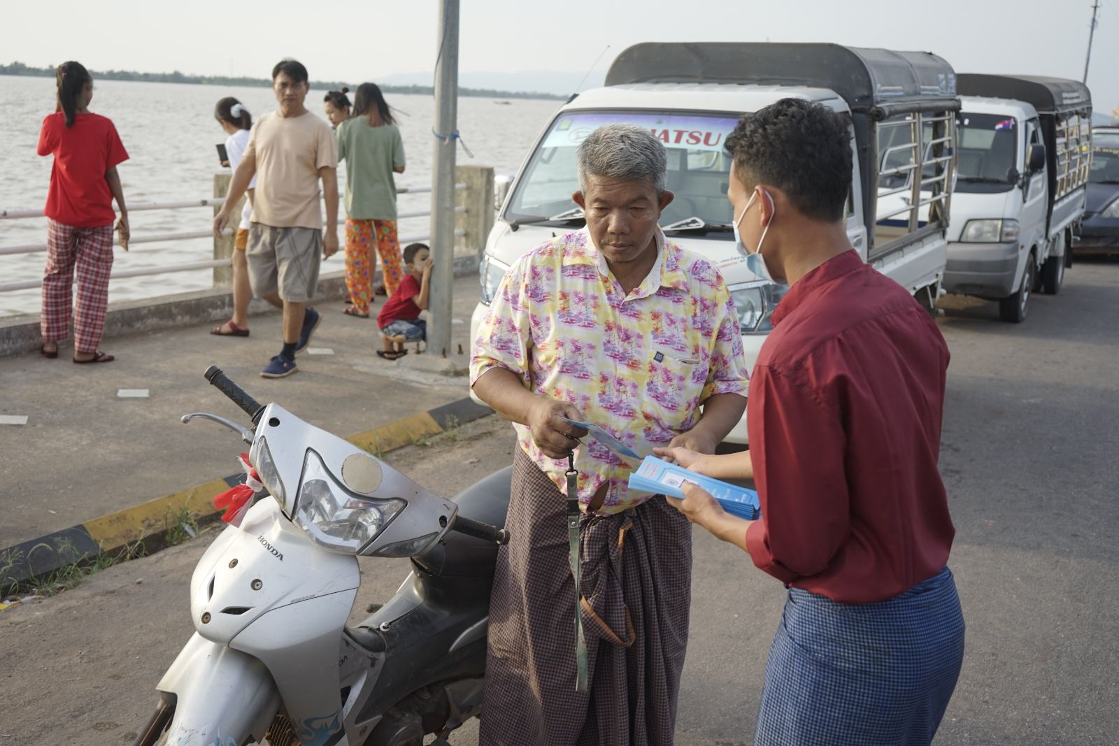 မွန်ပြည်နယ်အတွင်းရှိ မော်တော်ယာဉ် မောင်းနှင်သူများ စီးနှင်းလိုက်ပါသူများ သိရှိလိုက်နာနိုင်စေရန်မတွက် ယာဉ်စည်းကမ်း လမ်းစည်းကမ်းအန္တရာယ် အသိပညာပေး လက်ကမ်း စာစောင်များကို ကုန်းလမ်းပို့ဆောင်ရေး ညွှန်ကြားမှုဦးစီးဌာနနှင့် ခရိုင် ပြန်ကြားရေးနှင့်ပြည်သူ့ဆက်ဆံရေးဦးစီးဌာနတို့ ပူးပေါင်း၍ အသိပညာပေး လက်ကမ်း စာစောင်များကို ယမန်နေ့ ညနေပိုင်းက ကမ်းနားလမ်းတစ်လျှောက်၌ အခမဲ့ ဖြန့်ဝေပေးခဲ့သည်။