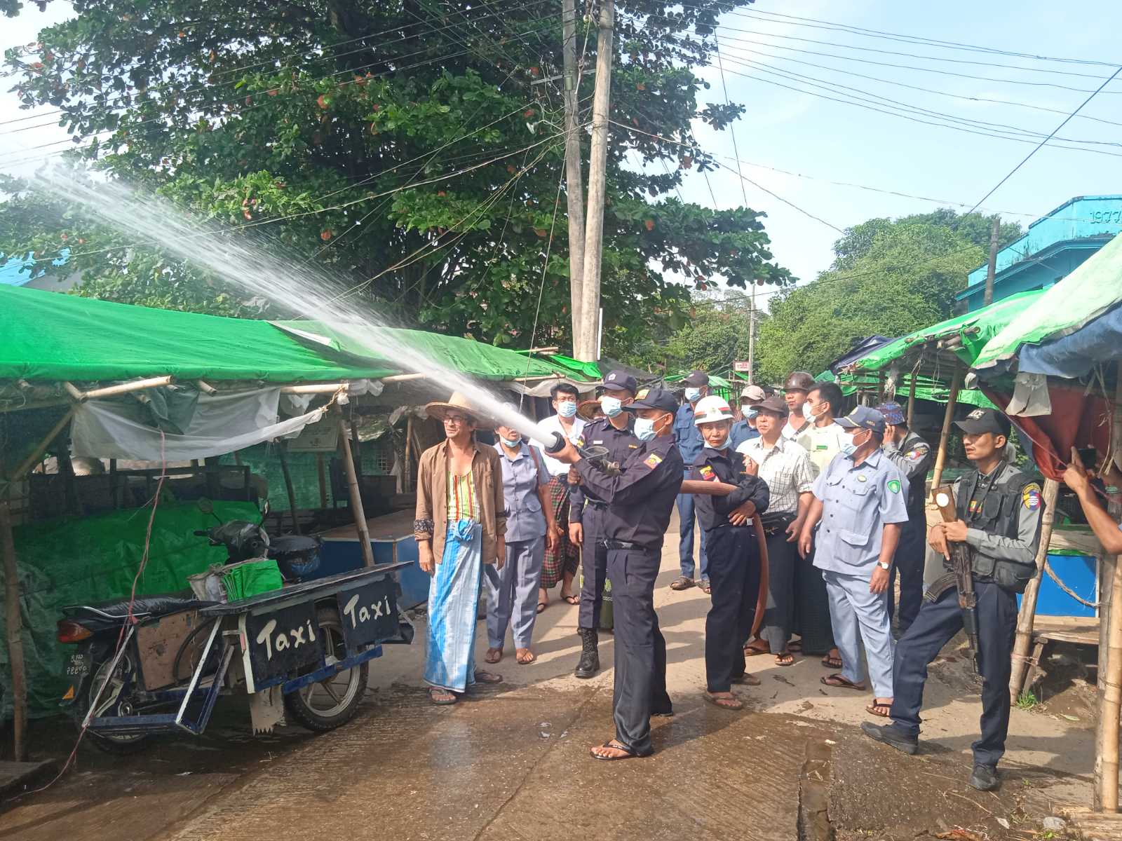 ဆက်လက်၍ စျေးအတွင်းရှိ မီးသတ်ရေစက်များ အသင့်ရှိစေရန် စမ်းသပ်မောင်းနှင်ခြင်းနှင့် နယ်မြေ မီးသတ်ယာဉ်အပါအဝင် သရုပ်ပြဇာတ်တိုက် လေ့ကျင့်ပက်ဖျန်းခြင်း၊ မီးသတ်ဆေးဘူးများအား ပြည်သူများ ကိုယ်တိုင် အလွယ်တကူအသုံးပြုနိုင်ရန် သုံးစွဲနည်းစနစ်တို့ကို သရုပ်ပြလေ့ကျင့်မှုများအား ဌာနဆိုင်ရာ ဝန်ထမ်းများနှင့် စျေးသူစျေးသားပြည်သူများ ပူးပေါင်း၍ ဆောင်ရွက်ခဲ့ကြကြောင်း သိရသည်။