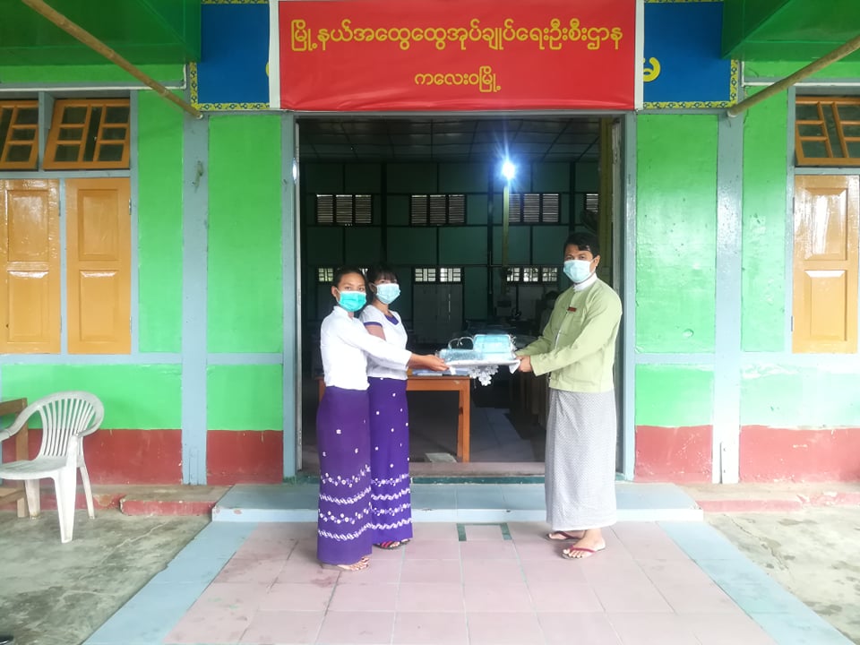 မြို့နယ်အဆင့် Coronavirus Disease 2019 (COVID-19) ကာကွယ်ထိန်းချုပ်ရေးနှင့် အရေး ပေါ်တုံ့ပြန်ရေးကော်မတီ ဥက္ကဋ္ဌ မြို့နယ်အုပ်ချုပ်ရေးမှူး ဦးဇော်လင်းက မြို့နယ်အဆင့်ဌာနဆိုင်ရာ တာဝန်ရှိအကြီးအကဲများနှင့် ဝန်ထမ်းများအား ကိုဗစ်-၁၉ ရောဂါ ကြိုတင်ကာကွယ်ရေးနှင့် အသိ ပညာပေးလုပ်ငန်းများနှင့် မိမိတို့ဌာနတာဝန် လုပ်ငန်းများ ဆောင်ရွက်ရာတွင် ကိုဗစ်-၁၉ ရောဂါ ကြိုတင်ကာကွယ်နိုင်ရေးအတွက် မြို့နယ်ဌာနဆိုင်ရာဦးစီးဌာန ၃၇ ဌာနအား ပါးစပ် နှာခေါင်းစည်း Mask နှင့် Face Shield များအား အခမဲ့ ဖြန့်ဝေပေးခဲ့ခြင်းဖြစ်ကြောင်း သိရသည်။