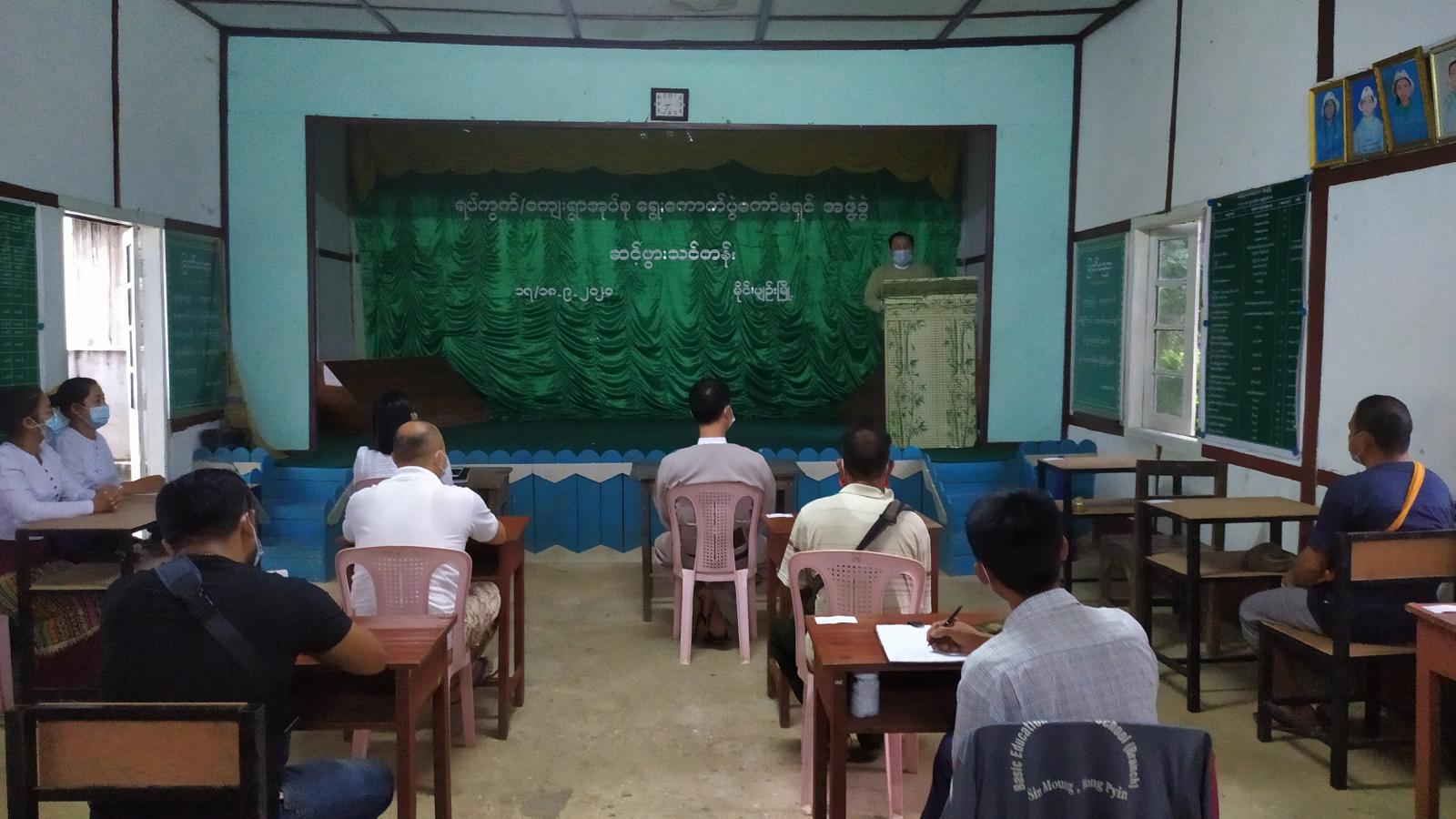 ရှေးဦးစွာ မြို့နယ်အထွေထွေအုပ်ချုပ်ရေးဦးစီးဌာနမှ ဒုတိယမြို့နယ်အုပ်ချုပ်ရေးမှူး ဦးမျိုးမင်းဇော်က အဖွင့်အမှာစကားပြောကြားပြီး၊ မြို့နယ်ရွေးကောက်ပွဲကော်မရှင်အဖွဲ့ခွဲ ဥက္ကဋ္ဌဦးစိုင်းအောင်ပွင့်က သင်တန်းပို့ချရခြင်းရည်ရွယ်ချက်များကို ရှင်းလင်းပြောကြားခဲ့သည်။ ဆက်လက်၍ ရွေးကောက်ပွဲအတွက် ရပ်ကွက်/ကျေးရွာအုပ်စုအလိုက် တာဝန်ယူဆောင်ရွက်ရမည့် ကော်မရှင်အဖွဲ့ခွဲအဖွဲ့ဝင်များ၏ လုပ်ငန်းတာဝန်နှင့်လုပ်ပိုင်ခွင့်၊ မဲဆန္ဒရှင်စာရင်းပြုစုခြင်း၊ ရွေးကောက်ပွဲဥပဒေနှင့် နည်းဥပဒေများ၊ လုပ်ငန်းလမ်းညွှန်များ၊ ကြိုတင်ဆန္ဒမဲပေးခြင်း၊ အငြင်းပွားမှုဖြေရှင်းခြင်း၊ မဲဆန္ဒရှင်များအားအသိပညာပေးခြင်း စသည့်အခြေခံကျသည့်လုပ်ငန်းစဉ်များအား ခရိုင်ကော်မရှင်ဥက္ကဋ္ဌဦးစိုင်းရီ၊ မြို့နယ်ကော်မရှင်ဥက္ကဋ္ဌ ဦးစိုင်းအောင်ပွင့်နှင့်အဖွဲ့ဝင်များက သက်ဆိုင်ရာခေါင်းစဉ်များအလိုက်သင်တန်းပို့ချခဲ့ကြောင်း သိရသည်။