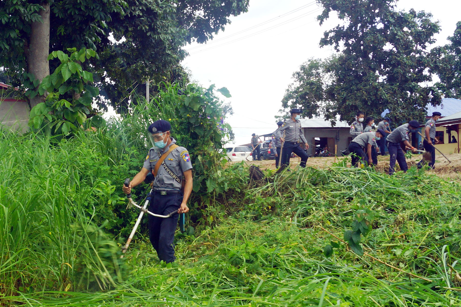 ထိုသို့ဆောင်ရွက်ရာတွင် ခရိုင်ရဲတပ်ဖွဲ့မှူး ဒုတိယရဲမှူးကြီး ရန်နိုင်ထွန်း၊ မြို့နယ်ရဲတပ်ဖွဲ့မှူး ရဲမှူးဌေးလှိုင်၊ မူးယစ်တပ်ဖွဲ့စု(၂၉)မှ ရဲမှူးဝင်းဇော်၊ မြို့မစခန်းမှူး ဒုရဲမှူးတင်စောထွန်း၊ သတင်းရဲတပ်ဖွဲ့ ဒုရဲမှူးအောင်ကျော်မြင့်၊ အမှတ်(၁၂၀)ယာဉ်ထိန်းရဲတပ်ဖွဲ့ ဒုရဲမှူးသန့်ဇင်နှင့် လေကြောင်းရဲတပ်ဖွဲ့ ဒုရဲမှူးနီလွင် တို့ဦးဆောင်သော ရဲတပ်ဖွဲ့ဝင်များနှင့် အိမ်ထောင်သည်ရဲမေများ စုပေါင်း၍ ကိုဗစ်-၁၉ ရောဂါ ကာကွယ်ရေး လမ်းညွှန်ချက်များနှင့်အညီ သတ်မှတ်နေရာအလိုက် ဓာတ်စွမ်းဟုန် ဘုန်းတော်ကြီးကျောင်းဝန်းအတွင်း တံမြက်စည်းလှည်းခြင်း၊ အမှိုက်သရိုက် များနှင့် ခြုံနွယ်သစ်ပင်များ ခုတ်ထွင်ရှင်းလင်းခြင်း စသည်တို့ကို စုပေါင်းဆောင်ရွက်ခဲ့ကြပြီး ယမန်နေ့က မြို့နယ်ပြည်သူ့ ဆေးရုံဝန်းအတွင်း စုပေါင်းသန့်ရှင်းရေးဆောင်ရွက် သွားမည်ဖြစ်ကြောင်း သိရသည်။