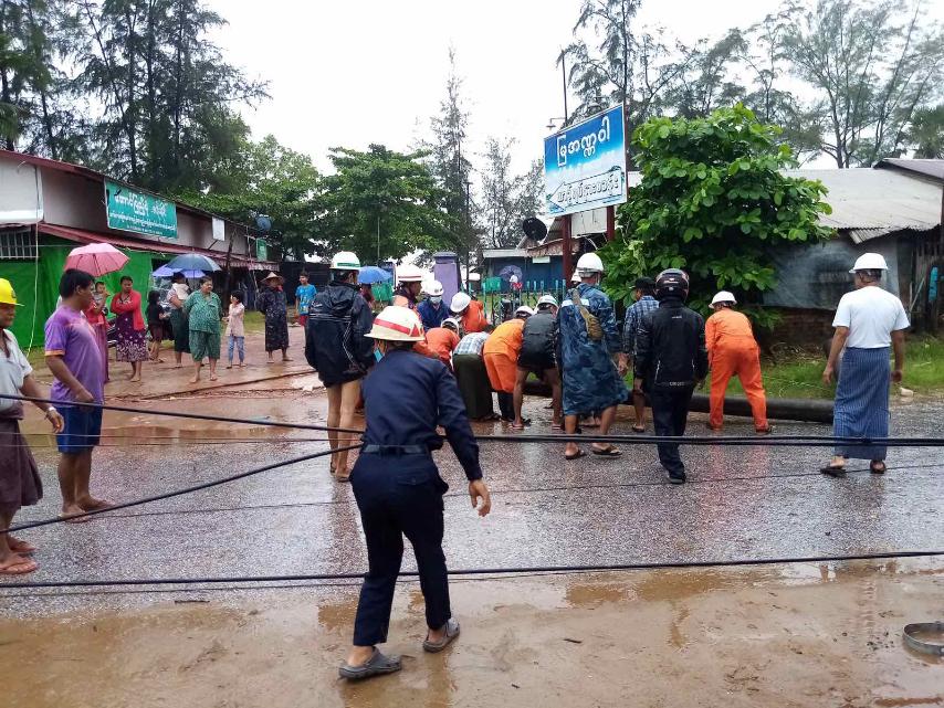 အဆိုပါ ဖြစ်စဉ်နေရာသို့ မြို့နယ်အုပ်ချုပ်ရေးမှူး ဦးသိန်းထွဋ်၊ မြို့နယ်ရဲတပ်ဖွဲ့မှူး ရဲမှူးဝင်းဇော်နှင့် မြို့နယ် သဘာဝဘေးအန္တရာယ် စီမံခန့်ခွဲမှုကော်မတီဝင်များမှ သွားရောက်ခဲ့ပြီး မြို့နယ်မီးသတ်ဦးစီးမှူး ဦးအောင်ကျော်ထွေး ဦးစီးသည့် သန္ဓေမီးသတ်တပ်ဖွဲ့ဝင်များ၊ ကျေးရွာအရန်မီးသတ်တပ်ဖွဲ့ဝင်များ၊ နယ်မြေရဲကင်းမှ ရဲတပ်ဖွဲ့ဝင်များ၊ သံဖြူဇရပ်နှင့် စက်စဲကျေးရွာမှ လူမှုကူညီရေးအဖွဲ့ဝင်များမှ လဲကျနေသည့် ကဗွီးပင်အား ခုတ်ထွင်ရှင်းလင်းခဲ့ပြီး သစ်ပင်လဲကျမှုကြောင့် လျှပ်စစ်မီးတိုင် ၃ တိုင် ပြိုလဲသွားကြောင်း သိရသည်။