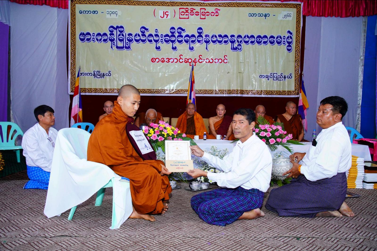 ထို့နောက် ဒုတိယမြို့နယ်အုပ်ချုပ်ရေးမှူး ဦးဇော်မျိုးဝင်းနှင့် မြို့နယ်အဆင့် ဌာနဆိုင်ရာများက စာအောင်ဆုရရှိကြသော ရဟန်း၊ သံဃာ၊ သာမဏေ၊ သီလရှင်နှင့် လူပုဂ္ဂိုလ် (၂၀၀)ပါးတို့အား စာမေးပွဲအောင်လက်မှတ်နှင့် စာအောင်ဆုများ ချီးမြှင့်ပေးအပ်ခဲ့ကြောင်း သိရသည်။