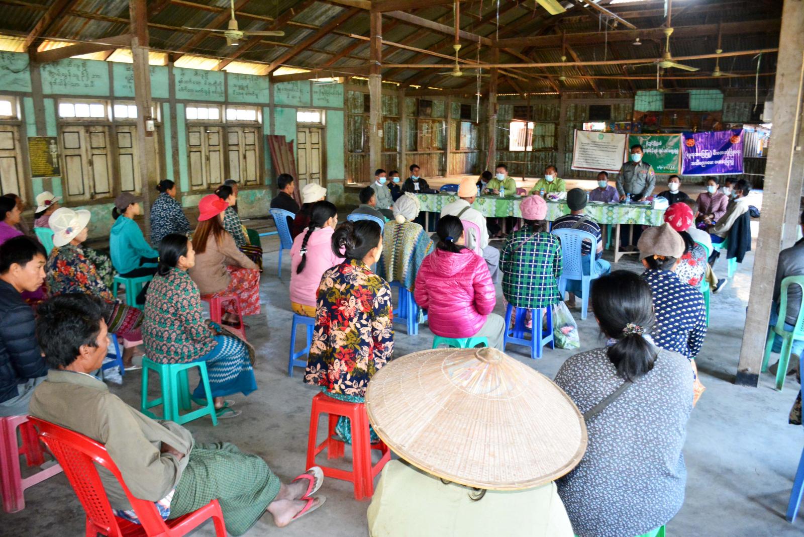 ထိုသို့ တွေ့ဆုံရာတွင် ခရိုင်စီမံအုပ်ချုပ်ရေးအဖွဲ့ဥက္ကဌက ဒေသဖွံ့ဖြိုးရေးလုပ်ငန်းများနှင့် ပတ်သက်၍ အဖွင့်အမှာစကားပြောကြားပြီး သက်ဆိုင်ရာတာဝန်ရှိသူများက နယ်မြေလုံခြုံရေး၊ တရားဥပဒေ စိုးမိုးရေး၊ ရွေးကောက်ပွဲဆိုင်ရာများ၊ စိုက်ပျိုးရေးဆိုင်ရာများ၊ မီးဘေးအန္တရာယ် ကြိုတင် ကာကွယ်ရေးများ၊ လူကုန်ကူးမှုအန္တရာယ်ကြိုတင်ကာကွယ်ရေးများ၊ ပန်းခင်းအဆင့်(၂) စီမံချက်ဖြင့် နိုင်ငံသားစိစစ်ရေးကတ်ပြားနှင့် အိမ်ထောင်စုလူဦးရေစာရင်း လုပ်ငန်းဆောင်ရွက်ခြင်း ဆိုင်ရာများ၊ တောင်သူများအတွက် ချေးငွေကိစ္စရပ်များ၊ ကျန်းမာရေးဆိုင်ရာများနှင့် ပညာရေးဆိုင်ရာများကို အသီးသီးဆွေးနွေးခဲ့ကြောင်း သိရသည်။
