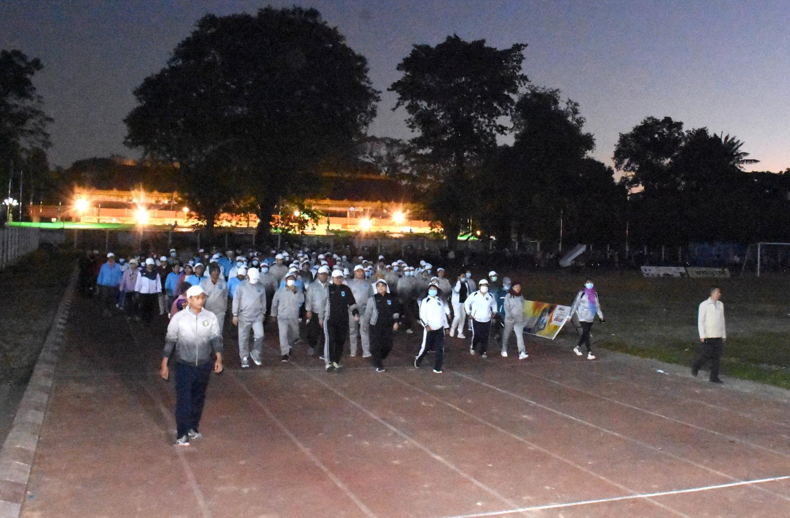 ထို့နောက် ပြည်သူ့အားကစားကွင်းအတွင်း ကိုယ်လက်ကြံ့ခိုင်ရေး အတွဲအမှတ် (၁)နှင့် (၂) လေ့ကျင့်ခန်းနှင့် Fitness Dance အကတို့ဖြင့် စုပေါင်းလေ့ကျင်ခဲ့ကြကာ အားကစားကွင်းအတွင်း လမ်းလျှောက်ပွဲတက်ရောက်လာသူများအတွက် ပျော်ပွဲရွှင်ပွဲအဖြစ် ကစားပွဲများ ကျင်းပပြုလုပ်ပေးပြီး အိမ်အသုံးအဆောင်ပစ္စည်းများကို ကံစမ်းမဲနှိုက်၍ ပေးအပ်ခဲ့ကြသည်။