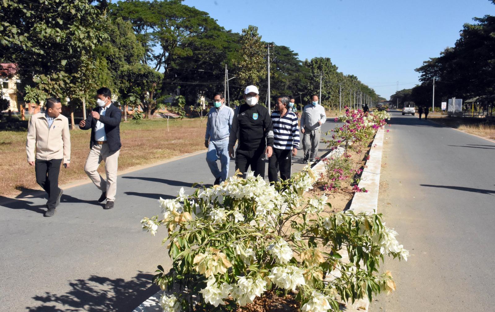 ထိုမှတစ်ဆင့် ပြည်နယ်ဝန်ကြီးချုပ်သည် မြစ်ကြီးနားတက္ကသိုလ်ဝင်း သန့်ရှင်းသာယာလှပပြီး ပန်းပင်များဖြင့် ဝေဆာစိမ်းလမ်းစိုပြေစေရေး မိန်းလမ်းမတစ်လျှောက် လမ်းလယ်ကျွန်းများတွင် ရောင်စုံစက္ကူပန်းပင်များ စိုက်ပျိုးထားရှိမှု၊ ပန်းများပွင့်လမ်းနေမှုတို့ကို လှည့်လည်ကြည့်ရှုစစ်ဆေးခဲ့ကြပြီး မြစ်ကြီးနားမြို့အား အစဉ်တစ်စိုက်သန့်ရှင်းသာယာပြီး ပန်းမြို့တော်ဖြစ်လာစေရေးတွေးတောကြံဆ၍ မြို့၏ အဓိကနေရာများနှင့် လမ်းကြားများပါမကျန် အပိုင်းလိုက် စနစ်တကျ စီမံချက်ရေးဆွဲ ဆောင်ရွက်သွားရေး တာဝန်ရှိသူများနှင့် ညှိနှိုင်းပေါင်းစပ်ဆောင်ရွက်ပေးခဲ့ကြောင်း သိသည်။