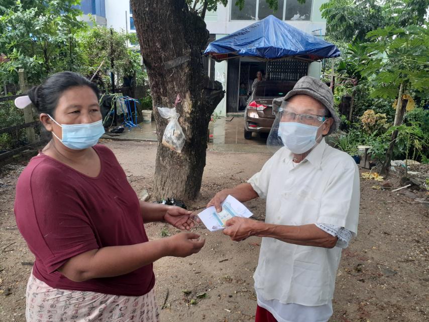 ကိုဗစ်-၁၉ ကာလအတွင်း ပုံမှန်ဝင်ငွေမရှိသော အခြေခံလူတန်းစားအိမ်ထောင်စုများအား နိုင်ငံတော် အစိုးရမှ တတိယအကြိမ်ထောက်ပံ့ငွေအဖြစ် အိမ်ထောင်စု တစ်စုလျှင် ငွေကျပ် နှစ်သောင်းကျပ်စီ ထောက်ပံ့ ပေးအပ်ရာ ရန်ကုန်တိုင်းဒေသကြီး၊ အရှေ့ပိုင်းခရိုင်၊ ဒဂုံမြို့သစ် (မြောက်ပိုင်း)မြို့နယ်တွင် ယမန်နေ့က (၃၁) ရပ်ကွက်မှ အုပ်ချုပ်ရေးမှူး ဦးတင့်လွင်နှင့် ရာအိမ်မှူး၊ ဆယ်အိမ်မှူးများမှ ရပ်ကွက်အတွင်းရှိ အဆိုပါ အိမ်ထောင်စု များအား အိမ်တိုင်ရာရောက် လိုက်လံပေးအပ်လျက်ရှိကြောင်း သိရသည်။