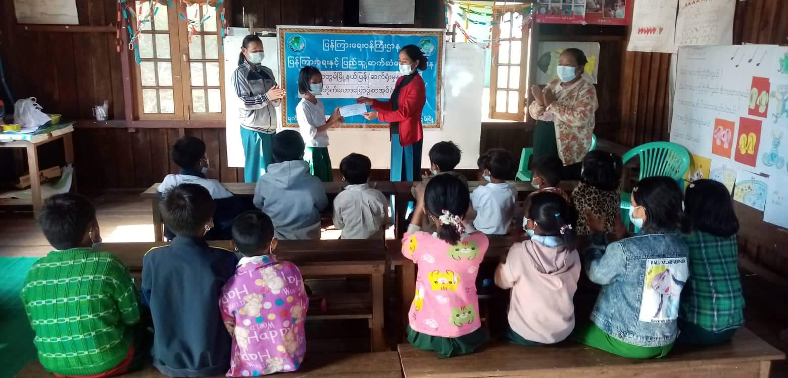 ထို့နောက် ကျောင်းသား၊ ကျောင်းသူများသည် ယဉ်ကျေးလိမ္မာပုံပြင်များစာအုပ်မှ စိတ်ထားမှန်သူ ခေါင်းစဉ်ဖြင့်လည်းကောင်း၊ ယဉ်ကျေးလိမ္မာပုံပြင်များ စာအုပ်မှ နည်းမှန်လမ်းမှန် ခေါင်းစဉ်ဖြင့်လည်းကောင်း၊ ကလေးတို့အတွက် နိုင်ငံတကာ ပုံပြင်များစာအုပ်မှ ပတ်ဝန်းကျင်ရဲ့ အကြံဥာဏ်ခေါင်းစဉ်ဖြင့်လည်းကောင်း တစ်ဦးချင်း စာဖတ်စွမ်းရည်ပြိုင်ပွဲ ယှဉ်ပြိုင်ကြပြီး ပြိုင်ပွဲ၌ ပထမ၊ ဒုတိယ၊ တတိယဆု ရရှိသူ ကျောင်းသား၊ ကျောင်းသူများအား မြို့နယ် ပြန်ကြားရေးနှင့်ပြည်သူ့ဆက်ဆံရေးဦးစီးဌာနမှ ဦးစီးအရာရှိ ဒေါ်ခင်မျိုးမြင့်၊ အခြေခံပညာ မူလတန်း(ကဘရန်ခူး) ကျောင်းအုပ်ဒေါ်စိန်ညိုတို့က ဆုများ အသီးသီးချီးမြှင့်သည်။ ဆက်လက်၍ စာအုပ်စာစောင်များ ခင်းကျင်းပြသရာ ကျောင်းသား၊ ကျောင်းသူများက ပျော်ရွှင်စွာဖြင့် စိတ်ဝင်တစား လေ့လာငှားရမ်း ဖတ်ရှု့ကြသည်။
