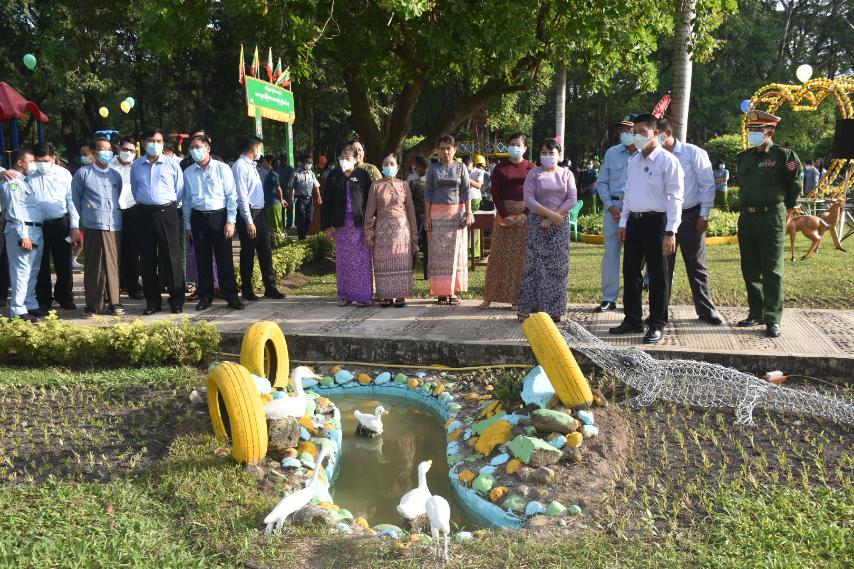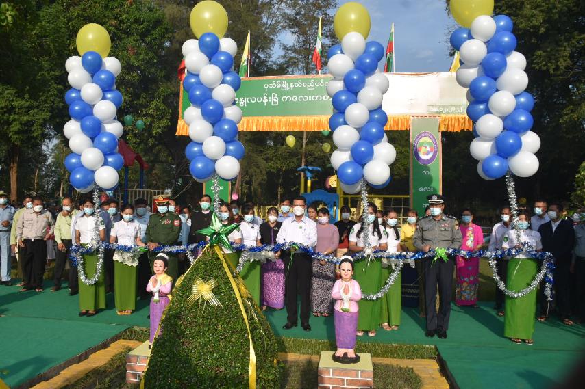 ဆက်လက်၍ မဟာဗန္ဓုလပန်းခြံ ကလေးကစားကွင်း တည်ဆောက်ခြင်းနှင့်ပတ်သက်၍ မြို့နယ်စည်ပင်သာယာရေးအဖွဲ့ အမှုဆောင်အရာရှိက ရှင်းလင်းတင်ပြပြီးနောက် မြို့နယ်စည်ပင်သာယာရေးကော်မတီဥက္ကဋ္ဌက ဝန်ကြီးချုပ်အား ဖွင့်ပွဲအထိမ်းအမှတ်လက်ဆောင်ပစ္စည်းအား ပေးအပ်သည်။ ယင်းနောက် မဟာဗန္ဓုလပန်းခြံ ကလေးကစားကွင်းအား ဝန်ကြီးချုပ်နှင့်တာဝန်ရှိသူများက ဖဲကြိုးဖြတ်ဖွင့်လှစ်ပေးပြီး ကလေးကစားကွင်းအားလှည့်လည်ကြည့်ရှုစစ်ဆေးခဲ့ပြီး လိုအပ်သည်များမှာကြားခဲ့သည်။ မဟာဗန္ဓုလပန်းခြံ ကလေးကစားကွင်းတွင် လျောစင်ကြီး၊ လျောစင်သေး၊ ဒန်း၊ တွယ်တက်စင်၊ စီးလျှော၊ ကြိုးတံတားပါကြောင်လိမ်လှေကား၊ ရေတံခွန်၊ လျှောက်လမ်းပါ သုံးပွင့်ဆိုင်အသဲပုံ၊ ထိုင်ခုံပါအသဲပုံတို့ဖြင့် တပ်ဆင်ထားရှိပြီး ကလေးများနှင့်အတူပါလာသည့် အုပ်ထိန်းသူများ ကိုယ်လက်လှုပ်ရှားကစားနိုင်ရန် Outdoor Fitness များကိုပါ တပ်ဆင်ထားရှိကြောင်း သိရသည်။