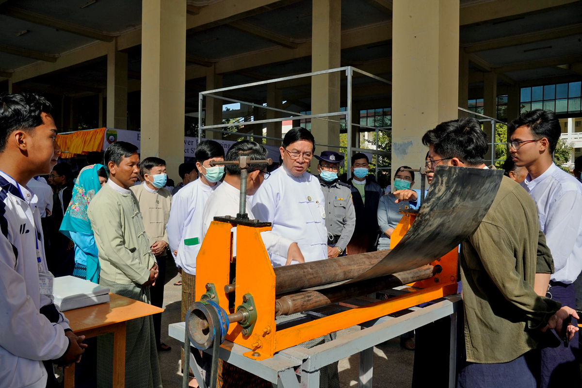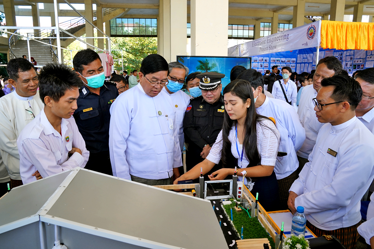 ဆက်လက်ပြီး နည်းပညာတက္ကသိုလ်(မကွေး) ဒုတိယပါမောက္ခချုပ် ဒေါက်တာတင်ဆန်းက “The Project Show and Competition 2022” ကျင်းပရခြင်းနှင့် ပတ်သက်၍ ရှင်းလင်း ပြောကြားပြီး တိုင်းဒေသကြီးဝန်ကြီးချုပ်နှင့် အဖွဲ့ဝင် ဝန်ကြီးများ၊ တိုင်းဒေသကြီးအဆင့် ဌာနဆိုင်ရာ အကြီးအကဲများ၊ ဆရာ/ဆရာမများနှင့် ကျောင်းသား၊ ကျောင်းသူများက Project ပစ္စည်းများ ခင်းကျင်းပြသဆောင်ရွက်ထားရှိမှုအား လိုက်လံကြည့်ရှုအားပေးခဲ့ကြကြောင်း သိရ သည်။
