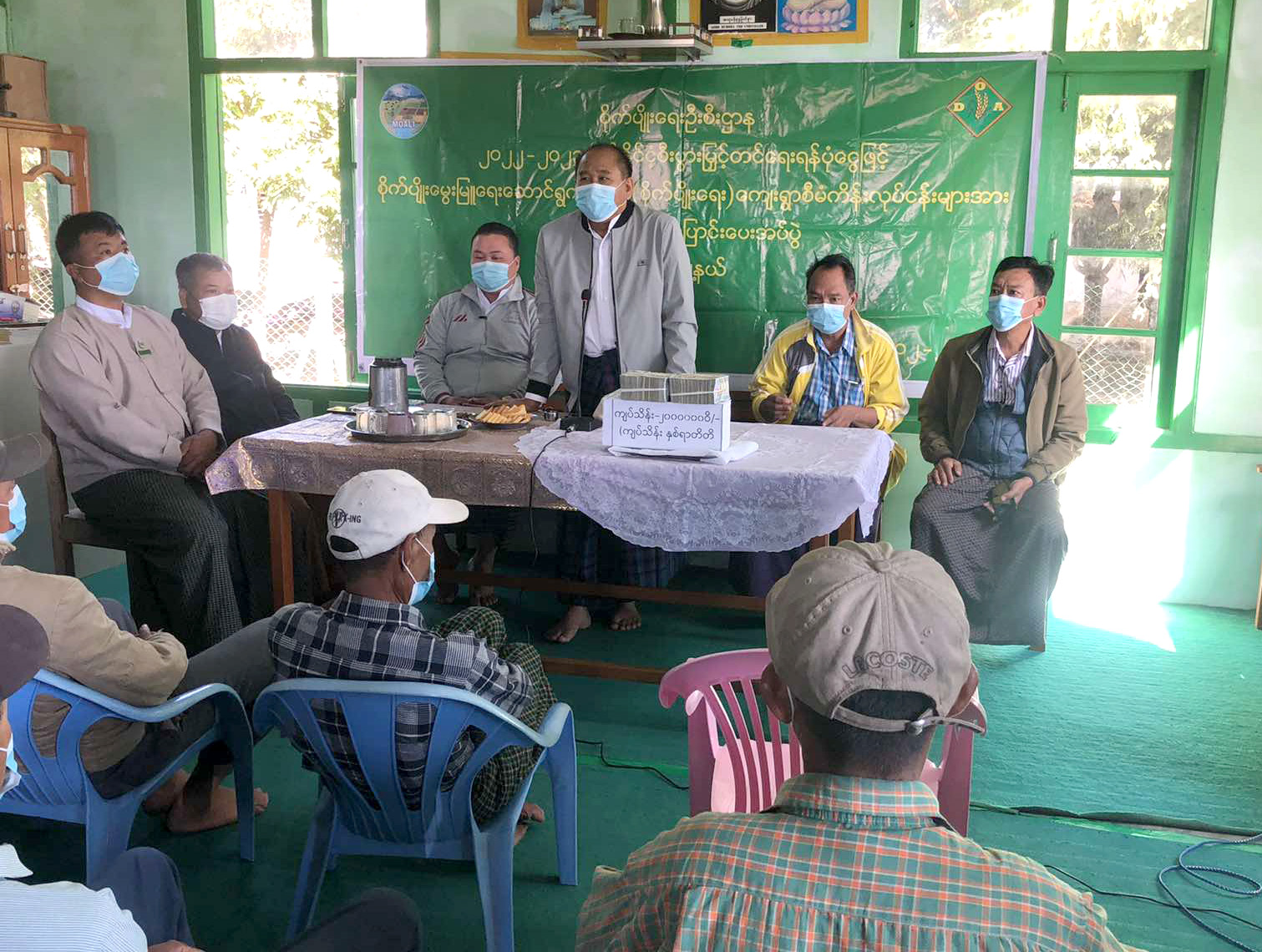 ထို့နောက် နိုင်ငံ့စီးပွားမြှင့်တင်ရေးရန်ပုံငွေများကို စိုက်ပျိုးရေးဆောင်ရွက်လျက်ရှိသော တောင်သူ (၂၀)ဦးအတွက် ငွေကျပ်သိန်း(၂၀၀)ကို တာဝန်ရှိသူများက ကျေးရွာကော်မတီဝင်များထံ အသီးသီးလွှဲပြောင်း ပေးအပ်ခဲ့ကြကြောင်း သိရသည်။