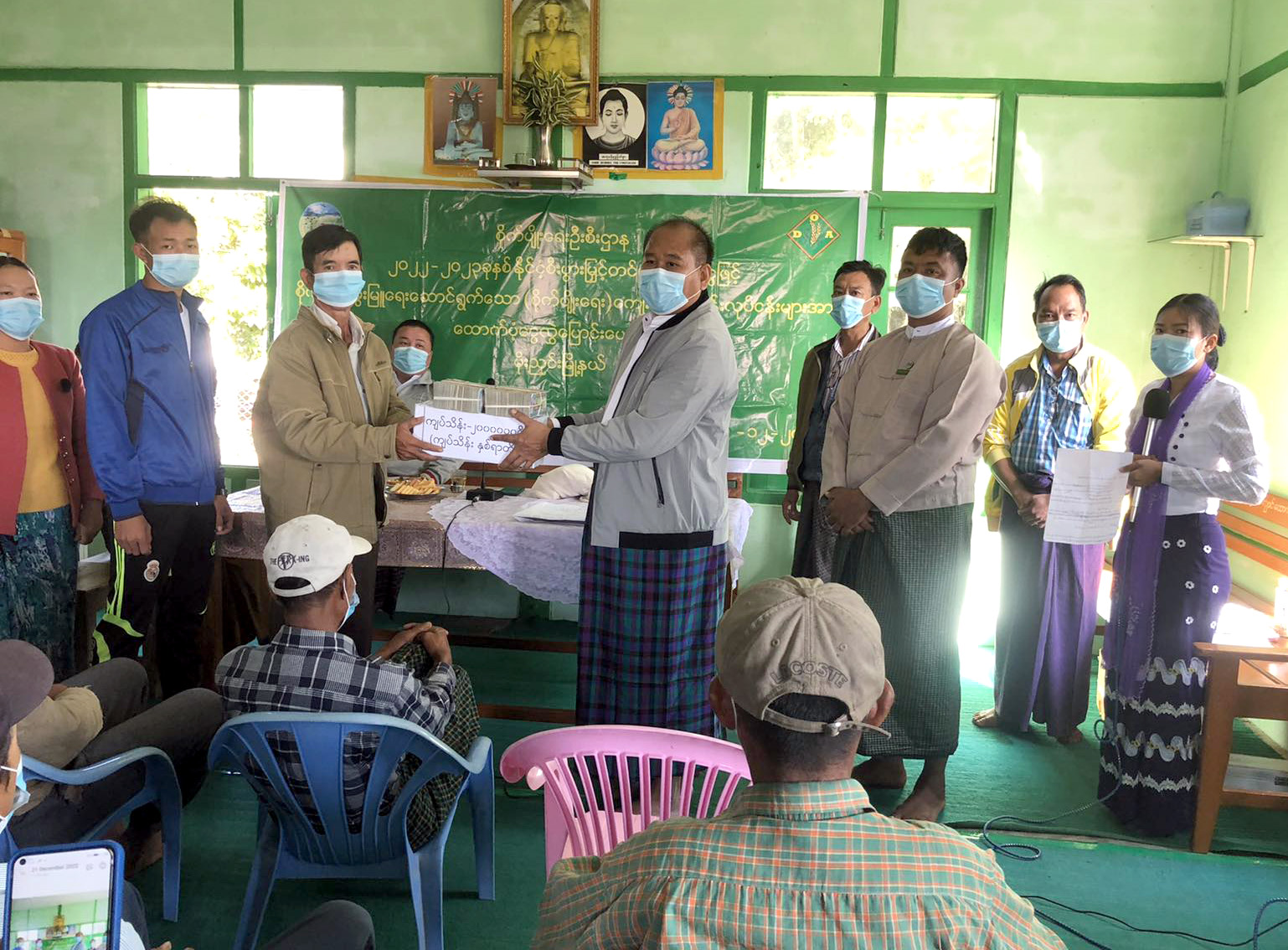 ကချင်ပြည်နယ် မိုးညှင်းခရိုင် မိုးညှင်းမြို့နယ် ဇီးဖြူကုန်းကျေးရွာတွင် နိုင်ငံ့စီးပွားမြှင့်တင်ရေး ရန်ပုံငွေဖြင့် စိုက်ပျိုးမွေးမြူရေးဆောင်ရွက်လျက်ရှိသော (စိုက်ပျိုးရေး)ကျေးရွာစီမံကိန်းလုပ်ငန်းများအတွက် ငွေကျပ်သိန်း(၂၀၀)ထောက်ပံ့ငွေ လွှဲပြောင်းပေးအပ်ခြင်းကို ယနေ့နံနက် (၁၀)နာရီက အခြေခံပညာမူလတန်းကျောင်း၌ ကျင်းပခဲ့သည်။