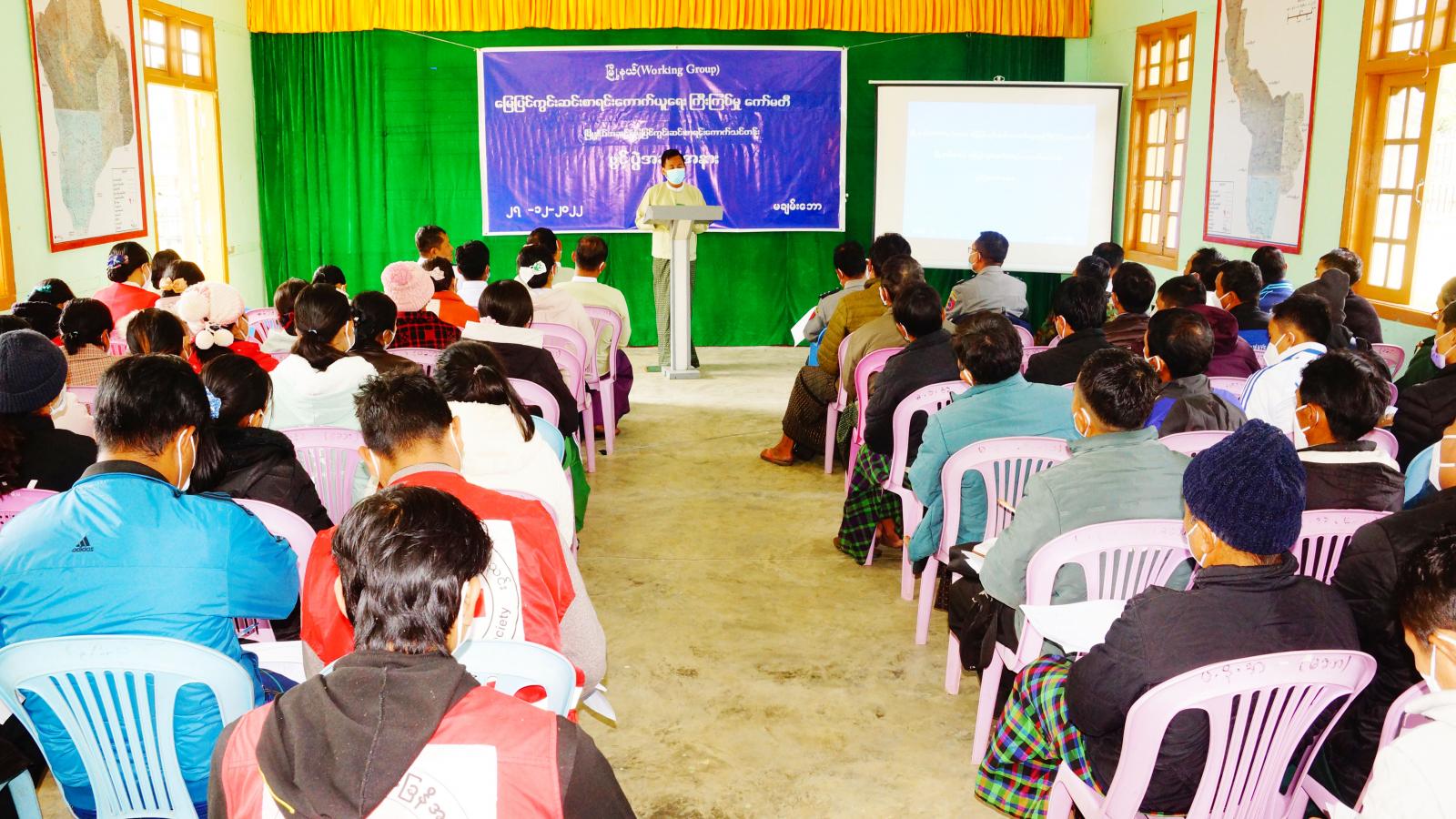 သင်တန်းဖွင့်ပွဲတွင် ခရိုင်မြေပြင်ကွင်းဆင်းစာရင်းကောက်ယူရေးကြီးကြပ်မှုကော်မတီဥက္ကဋ္ဌကိုယ်စား ဒုတိယခရိုင်အုပ်ချုပ်ရေးမှူး ဦးသန်းထွေးက မြေပြင်ကွင်းဆင်းစာရင်းကောက်အဖွဲ့အနေဖြင့် အရေးကြီးဆုံးနှင့် လက်တွေ့စာရင်းကောက်ယူမည့် (Working Group) အဖွဲ့ဖြစ်ပါကြောင်းနှင့် နိုင်ငံတော်၏ ရှေ့လုပ်ငန်းစဉ်အတွက် အလွန်အရေးကြီးပြီး အလေးအနက်ထား၍ ပူးပေါင်းဆောင်ရွက်ပေးရန် တိုက်တွန်းလိုပါကြောင်း အမှာစကား ပြောကြားပြီး ခရိုင် လူ၀င်မှုကြီးကြပ်ရေးနှင့်ပြည်သူ့အင်အားဦးစီးဌာန ခရိုင်ဦးစီးမှူး ဦးဗိုလ်မြင့်က မိမိရပ်ကွက်/ကျေးရွာအုပ်စုအတွင်း အိမ်ထောင်စုလူဦးရေစာရင်းနှင့် လူဦးရေစာရင်း တိကျမှန်ကန် မထပ်မကျန်စေရန် လိုအပ်ကြောင်း၊EID အထစနှင့်ကာ ယကံရှင်၏ အထစ၊ နိုင်ကတ်ပြားပါ ကိုယ်ရေးအချက်အလက်များ အမှန်ဖြစ်ရန် ပြင်ဆင်၊ဖြည့်စွက်ဆောင်ရွက်ရန်လို အပ်ကြောင်း၊ သင်တန်းမှ သင်ကြားပို့ချခဲ့သည့်အတိုင်း သေဆုံး၊ ပြောင်း၀င်၊ ပြောင်းထွက်၊ ခရီးလွန်၊ သာသနာ့ဘောင်၀င် ၊ပြည်ပထွက်ခွာ၊ မွေးတိုးမှတ်ချက်များအား သေချာစွာ မှတ်သားလာရန် လိုအပ်ကြောင်းပြောကြားသည်။