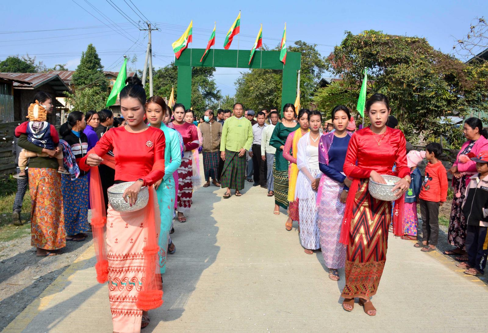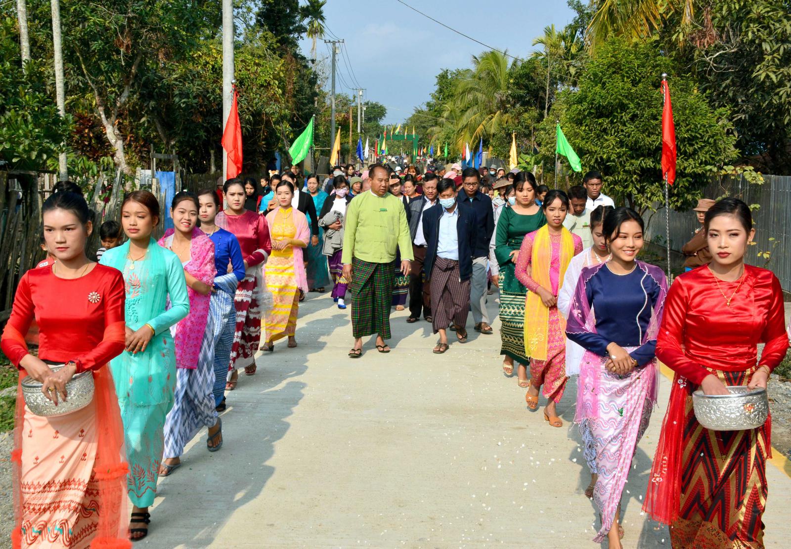 ထို့နောက် တာဝန်ရှိသူများက ကျေးရွာတွင်းကွန်ကရစ်လမ်းသစ်အား ဖဲကြိုးဖြတ်ဖွင့်လှစ်ပေးကြပြီး လမ်းသစ်မုဒ်ဦးရှေ့တွင် စုပေါင်းမှတ်တမ်းတင်ဓါတ်ပုံများ ရိုက်ကူးကြကာ ယင်းလမ်းသစ်အား လှည့်လှယ်ကြည့်ရှုစစ်ဆေးခဲ့ကြောင်း သိရသည်။