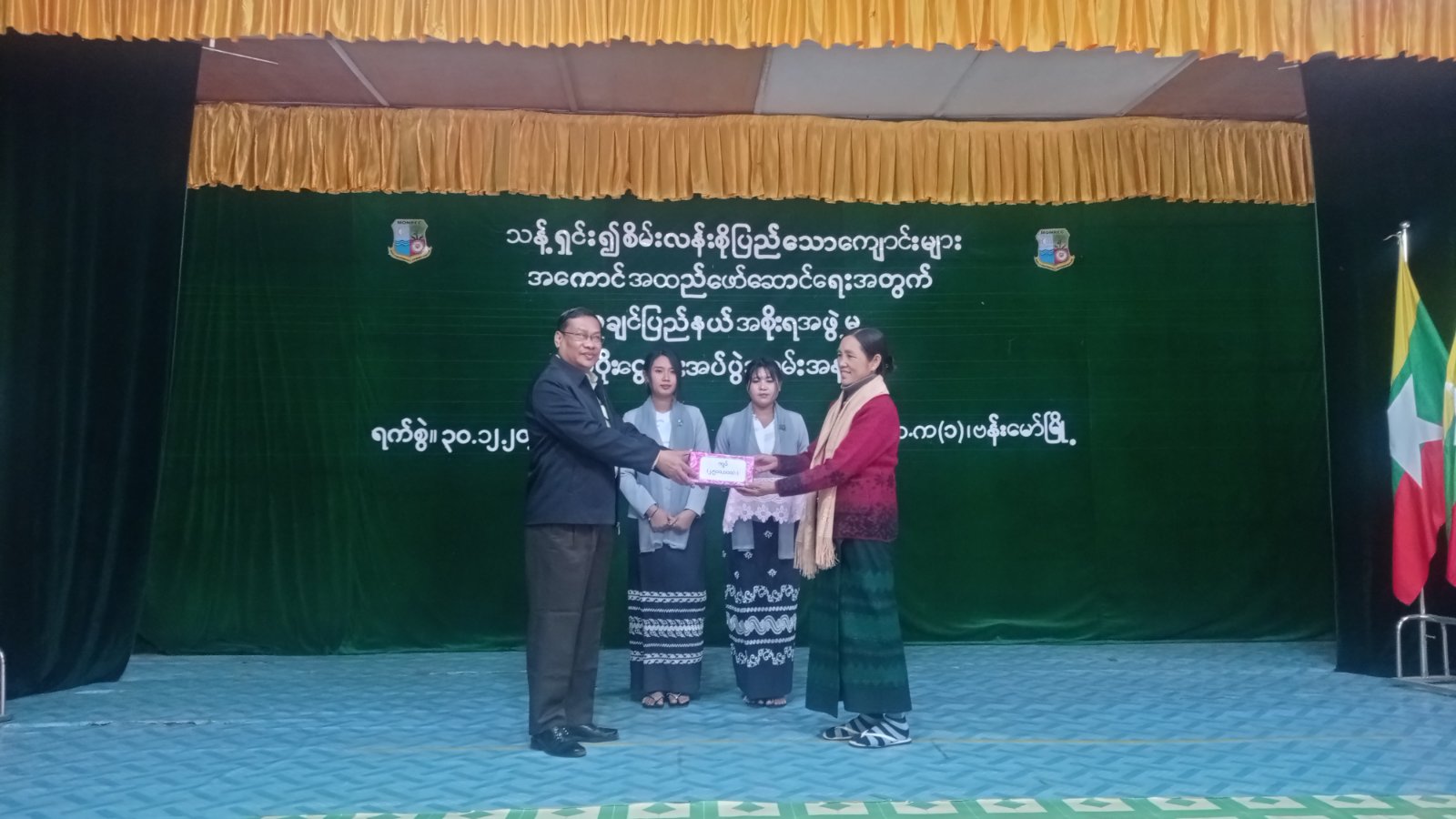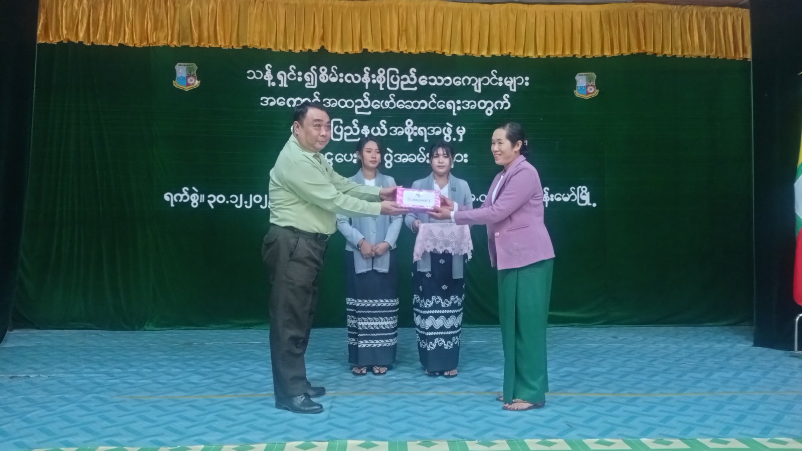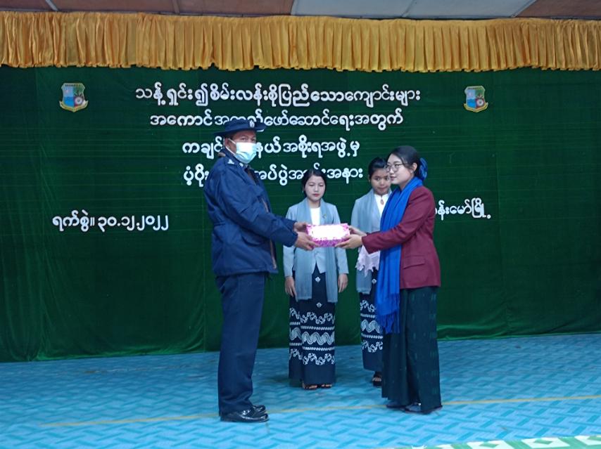 ထို့နောက် အမှတ်(၁)အခြေခံပညာ အထက်တန်းကျောင်းအား ပံ့ပိုးရန်ပုံငွေ ကျပ်(၂၅)သိန်း၊ အမှတ်(၁)အခြေခံပညာ အလယ်တန်းကျောင်းအား ပံ့ပိုးရန်ပုံငွေကျပ်(၁၅)သိန်း၊ အခြေခံပညာမူလွန်ကျောင်း (၂ မိုင်အောင်သာ)ကျောင်းအား ပံ့ပိုးရန်ပုံငွေကျပ်(၁၀)သိန်းတို့ကို ခရိုင်စီမံအုပ်ချုပ်ရေးအဖွဲ့ဥက္ကဋ္ဌနှင့် အဖွဲ့ဝင်များ၊ မြို့နယ်စီမံအုပ်ချုပ်ရေးအဖွဲ့ဥက္ကဋ္ဌ ဦးအောင်ထွန်းတိုးတို့က ပေးအပ်ခဲ့ကြပြီး အမှတ်(၁)အခြေခံပညာ အထက်တန်း ကျောင်းအုပ်ဆရာမကြီး ဒေါ်စမ်းစမ်းအေးကကျေးဇူးတင်စကား ပြောကြားခဲ့ကြောင်း သိရှိရသည်။