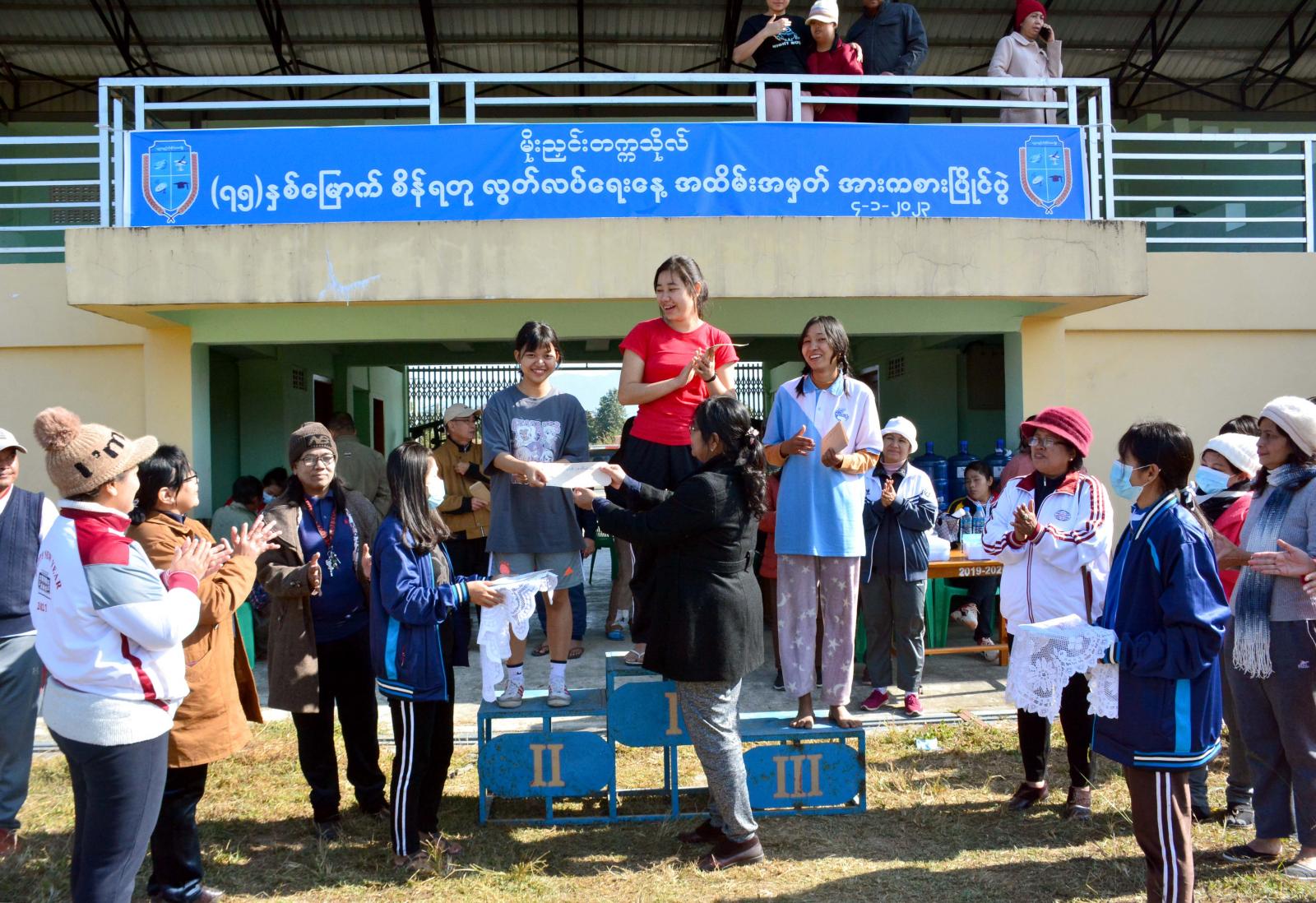 ကချင်ပြည်နယ် မိုးညှင်းခရိုင် မိုးညှင်းတက္ကသိုလ်တွင် (၇၅)နှစ်မြောက် စိန်ရတု လွတ်လပ်ရေးနေ့ အထိမ်းအမှတ် အားကစားပြိုင်ပွဲများနှင့် ဆုချီးမြှင့်ခြင်းအခမ်းအနားကို ယမန်နေ့နံနက်ပိုင်းက တက္ကသိုလ်အတွင်းရှိ အားကစားကွင်း၌ ကျင်းပသည်။