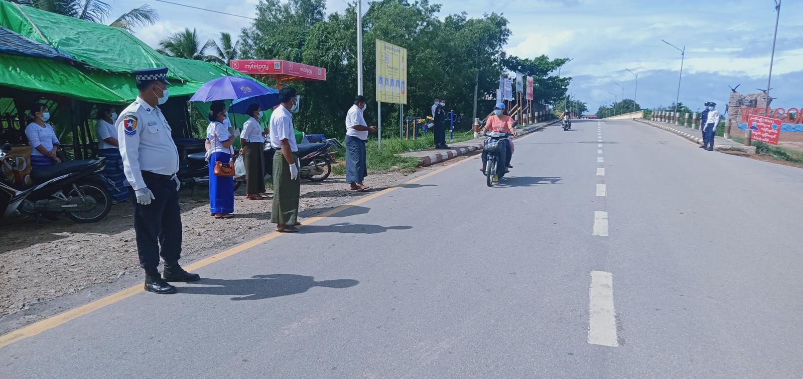 အဆိုပါ ကိုဗစ်−၁၉ ရောဂါ ထိန်းချုပ်ရေးနှင့် အရေးပေါ်တုံ့ပြန်ရေးကော်မတီ၀င်များနှင့် တာ၀န်ကျ ကျန်းမာရေး၀န်ထမ်းများ၊ ရဲတပ်ဖွဲ့၀င်များ၊ မီးသတ်တပ်ဖွဲ့၀င်များ၊ ဌာနဆိုင်ရာတာ၀န်ရှိသူများမှ အဝေးပြေးယာဉ်များ၊ အိမ်စီးယာဉ်ငယ်များ၊ မော်တော်ဆိုင်ကယ်များဖြင့် ဖြတ်သန်းသွားလာနေကြသည့် ခရီးသွားပြည်သူများကို အပြင်ထွက်တိုင်းနှာခေါင်းစည်းတပ်ဆင်ရန်၊ လက်ကိုမကြာခဏ သန့်ရှင်းစင်ကြယ်စွာ ဆေးကြောရန် အစရှိသည့် ကျန်းမရေးအသိပညာပေးခြင်းနှင့် နှာခေါင်းစည်းများ တပ်ဆင်ခြင်းမရှိပါက ချက်ချင်း ၀ယ်ယူ တပ်ဆင်စေခြင်းစနစ်ဖြင့် ဆောင်ရွက်လျက်ရှိကြောင်း သိရှိရပါသည်။