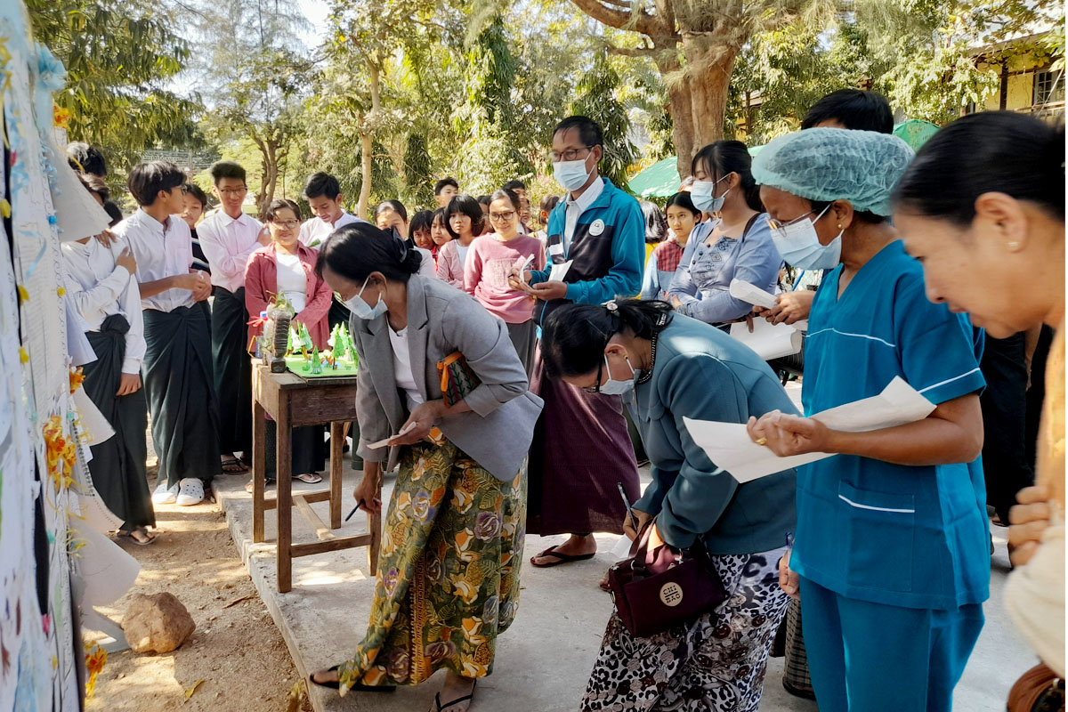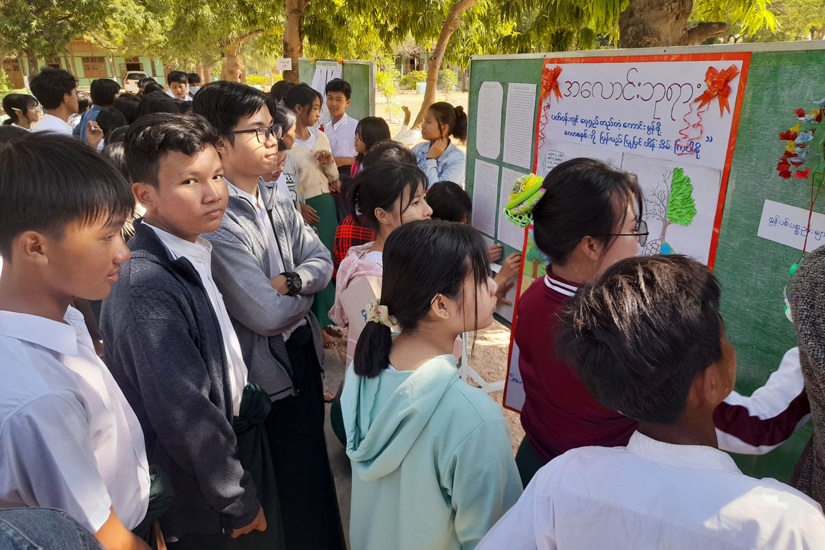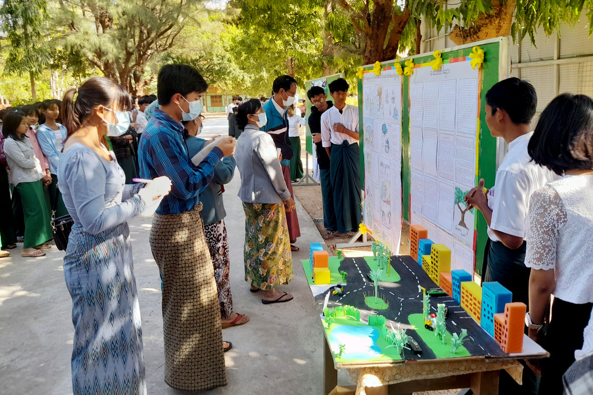 အဆိုပါ သဘာဝပတ်ဝန်းကျင်ထိန်းသိမ်းရေးလှုပ်ရှားမှုအဖြစ် ကျင်းပသည့်အသင်းလိုက် နံရံကပ်စာစောင် ပြပွဲပြိုင်ပွဲကို၊ ကျောင်းသားကျောင်းသူများ သဘာဝပတ်ဝန်းကျင်ထိန်းသိမ်းရေးကို စိတ်ဝင်စားလာစေရန် နှင့် သဘာဝပတ်ဝန်းကျင် ထိန်းသိမ်းရေးလုပ်ငန်းများတွင်တက်ကြွစွာ ပူးပေါင်းပါဝင်ဆောင်ရွက်တတ်လာ စေရန်ရည်ရွယ်ကျင်းပပေးခြင်းဖြစ်ကြောင်းအမှတ် (၁) အခြေခံပညာအထက်တန်း ကျောင်း ကျောင်းအုပ်ဆရာမကြီး ဒေါ်နိုင်နိုင်မော်က ပြောသည်။ ပြိုင်ပွဲကို အနော်ရထာ အသင်း၊ ကျန်စစ်သားအသင်း၊ ဘုရင့် နောင်အသင်း၊ အလောင်းဘုရားအသင်းနှင့် ဗန္ဓုလအသင်းဟူ၍ အသင်း(၅)သင်းခွဲ၍ Grade-6 မှ Grade- 11 အထိ ကျောင်းသားကျောင်းသူများ ပါဝင်ယှဉ်ပြိုင်စေခဲ့ကြောင်းသိရပြီး၊ တန်းချုပ်ဆရာ/ဆရာမများ ဦးဆောင်မှုဖြင့် အသင်းလိုက်ကျောင်းသားကျောင်းသူများ စည်းလုံးညီညွတ်မှုစွမ်းအားများပေါ်လွင်အောင် စုစည်းဆောင်ရွက်စေခြင်းဖြစ်ကြောင်သိရသည်။ အဆိုပါ နံရံကပ်စာစောင်များကို လေးရွာအခြေခံပညာ အထက်တန်းကျောင်းအုပ်ဆရာမကြီး ဒေါ်အေးအေးမော်နှင့်ဆရာမများ၊ မြို့နယ်ပြန်ကြားရေးနှင့်ပြည်သူ့ ဆက်ဆံရေးဦးစီး ဌာနမှ ဒုတိယမြို့နယ်ဦးစီးမှူးနှင့်ဝန်ထမ်းများက နံရံကပ်စာစောင်တစ်ခု၏ ဖွဲ့စည်းပုံ (ဝတ္ထုတို၊ဆောင်းပါး၊ကဗျာ၊ ကာတွန်း၊ သရုပ်ဖော်ပုံ ပါဝင်မှု)၊အရောင်စုစည်းမှု၊ သန့်ရှင်းသပ်ရပ် လှပမှု၊ သတ်မှတ်ဘောင်အကျယ်အဝန်းတွင် စည်းကမ်းတကျဆောင်ရွက်မှု၊ စည်းလုံညီညွတ်စွာဆောင်ရွက်နိုင်မှု အစရှိသည့် ခေါင်းစဉ်များဖြင့် ပထမ၊ဒုတိယ၊ တတိယနှင့် နှစ်သိမ့်ဆု(၂)ဆုတို့ကို အကဲဖြတ် အမှတ်ပေး ရွေးခြယ်ခဲ့ကြသည်။