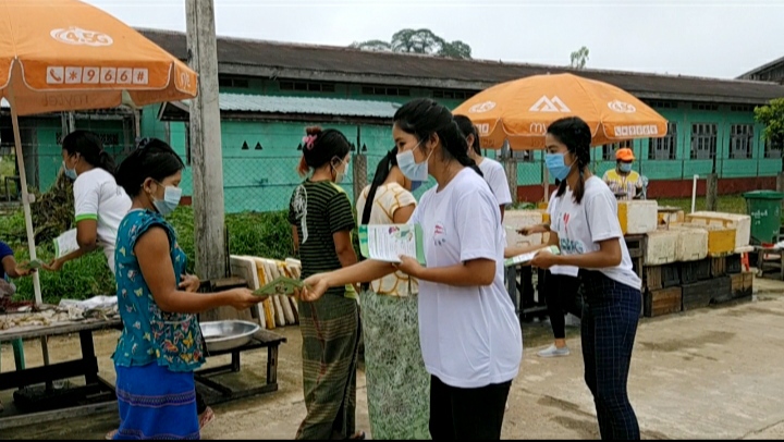 အလားတူ မြို့နယ်ဘေးအန္တရာယ်ဆိုင်ရာစီမံခန့်ခွဲမှုဦးစီးဌာန ဦးစီးမှူး ဦးကျော်ဆန်းနှင့် ဝန်ထမ်းများ၊ မြို့နယ်စည်ပင်သာယာရေးကော်မတီဥက္ကဋ္ဌ ဦးမင်းဝေ၊ မြို့နယ်စည်ပင်သာယာရေးအဖွဲ့ အမှုဆောင်အရာရှိ ဦးကျော်စိုးအောင်၊ မြို့နယ်ပြန်ဆက်ဦးစီးမှူး ဒေါ်သီသီခိုင်တို့က ကိုဗစ် - ၁၉ ရောဂါဆိုင်ရာ ပညာပေးလက်ကမ်းစာစောင်များနှင့် ပိုစတာများကို ဈေးသူ၊ ဈေးသားများ၊ ဈေးဝယ်လာသူ မိဘပြည်သူများအပါအဝင် ခရီး သွားပြည်သူများထံ (အခမဲ့) ဖြန့်ဝေပေးကြသည်။ တစ်ဆက်တည်းမှာပင် ကျန်းမာရေးနှင့် အားကစားဝန်ကြီးဌာနမှ ထုတ်ပြန်ထားသော ဖြစ်နိုင်ပါက အိမ်မှာပဲနေရန်။ မဖြစ်မနေအပြင်ထွက်ရပါက Mask ကို တပ်ပြီးမှထွက်ကြရန်၊ လူစုလူဝေးရှောင်းရှားရန် စသည့်လမ်းညွှန်ချက်များအား အသံချဲ့စက်ဖြင့် သတိပေးနှိုးဆော် ကြော်ညာပေးခြင်းများကို ပူးပေါင်းဆောင်ရွက်ကြကြောင်း သိရသည်။