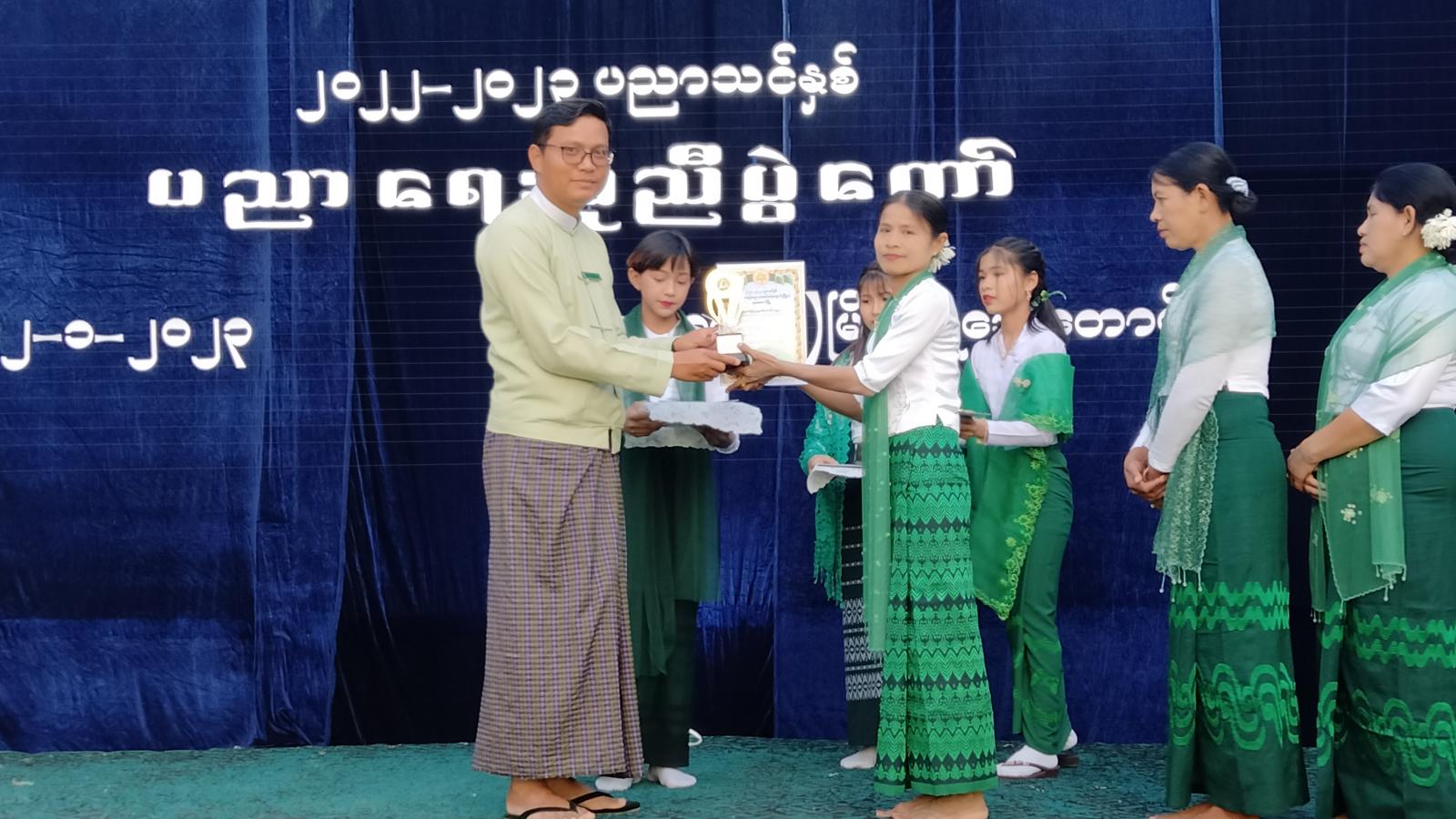 အဆိုပါ ဆုများကို အခမ်းအနားသို့ တက်ရောက်လာကြသည့် ဌာနဆိုင်ရာ တာဝန်ရှိသူများ၊ ပညာရေးမိသားစုမှ ဆရာ/ဆရာမများနှင့် ကျောင်းသားမိဖများက အသီးသီး ဆုချီးမြှင့် ပေးခဲ့ကြသည်။