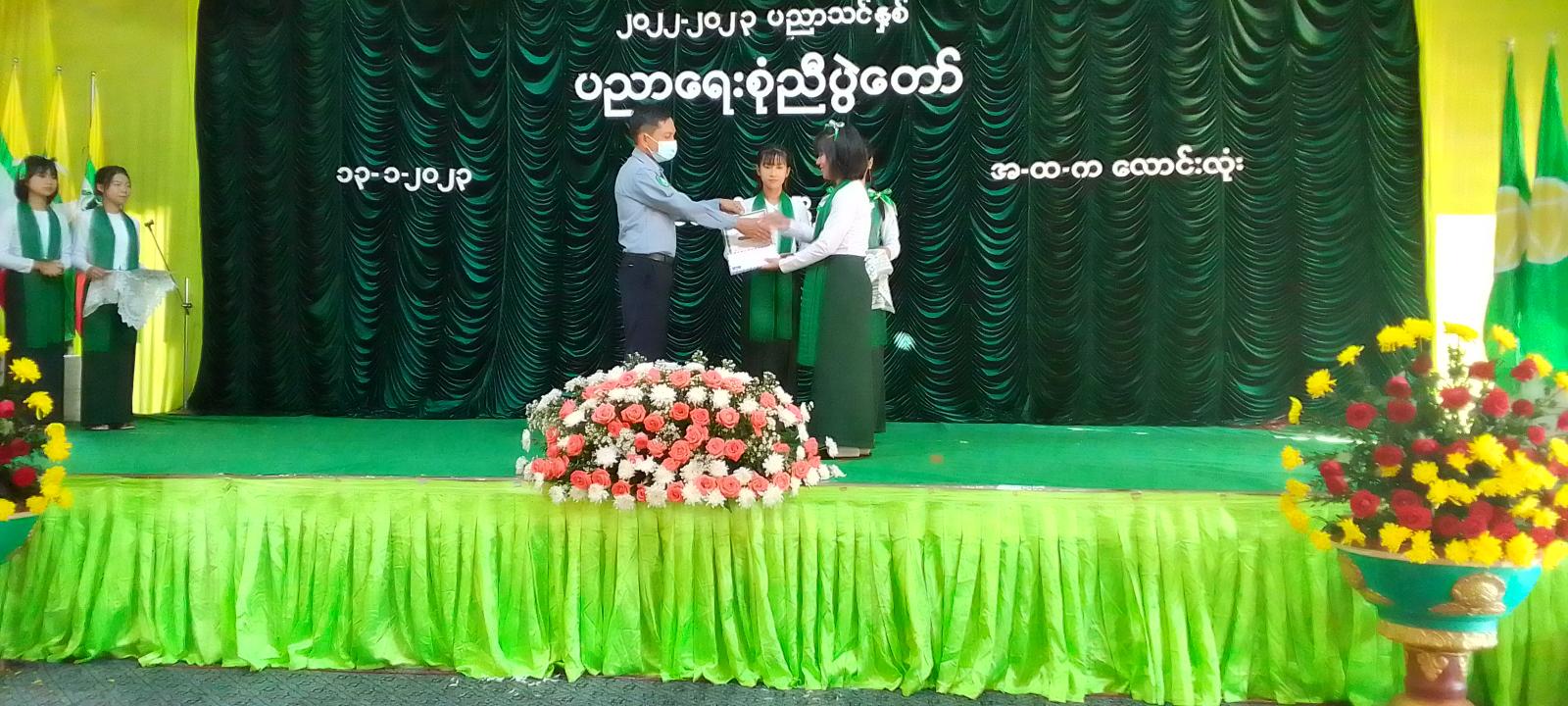 ဆက်လက်၍ တိုင်း၊ခရိုင်၊ မြို့နယ်အဆင့် အားကစားပြိုင်ပွဲ၊ စာစီစာကုံးပြိုင်ပွဲ၊ ပညာရည်ချွန် ဆုများ အသီးသီး ရရှိသော ကျောင်းသား/ သူများအား သက်ဆိုင်ရာ တာဝန်ရှိသူများက ဆုများ ချီးမြှင့်ပေးခဲ့သည်။