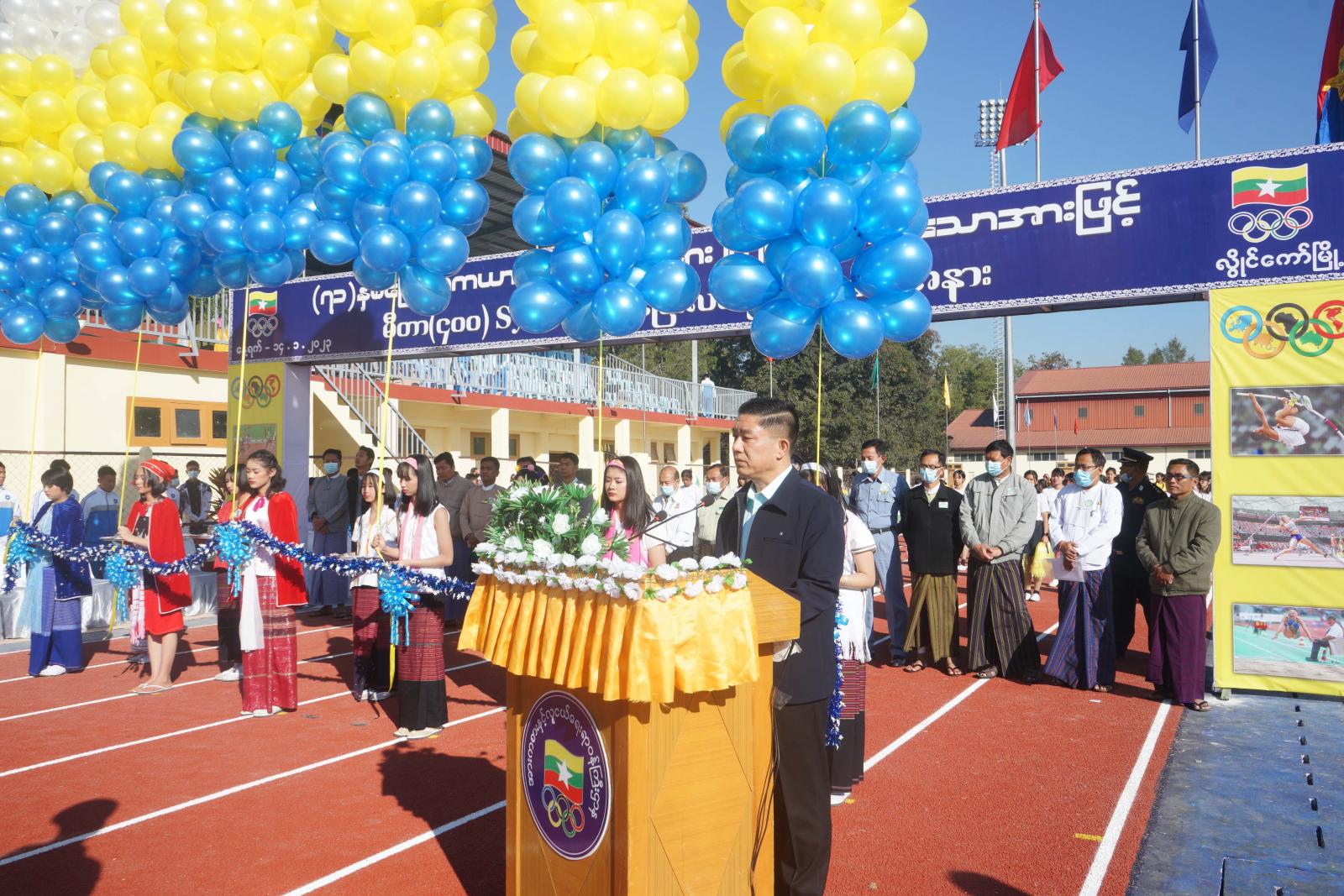 ရှေးဦးစွာ ကယားပြည်နယ်ဝန်ကြီးချုပ် ဦးဇော်မျိုးတင် က အဖွင့်အမှာစကားပြောကြားရာတွင် ပြည်နယ်အတွင်းရှိ ဒေသခံလူငယ်လူရွယ်များ ကျန်းမာကြံ့ခိုင်ရေး၊ ပညာရည်မြင့်မားစေရေးနှင့် ဗလငါးတန်ဖွံ့ဖြိုး တိုးတက်စေရေး၊ ပြေးခုန်ပစ်အားကစားအဆင့်အတန်း မြင့်မားလာစေရေးနှင့် မျိုးဆက်သစ်အားကစားသမား ပေါ်ထွန်းလာစေရေး၊ မြို့နယ်၊ခရိုင်၊ပြည်နယ်အဆင့်မှသည် အာဆီယံ ပြိုင်ပွဲများနှင့် နိုင်ငံတကာ ပြိုင်ပွဲများကို ဝင်ရောက်ယှဉ်ပြိုင်နိုင်စေရေးတို့ကို ရည်ရွယ်ပြီး ဆောင်ရွက်ပေးခြင်းဖြစ်ကြောင်း၊ ပြည်နယ်အစိုးရအဖွဲ့အနေဖြင့် ဒေသဖွံ့ဖြိုးရေးလုပ်ငန်းများကို ကဏ္ဍပေါင်းစုံမှ ဖြည့်ဆည်းဆောင်ရွက်ပေးလျက်ရှိရာ အားကစားကဏ္ဍကိုလည်း ဖွံဖြိုးတိုးတက်အောင် တည်ဆောက် ပေးထားသော မီတာ(၄၀၀) Synthetic ပြေးလမ်းပါ အဆင့်မြင့် အားကစားကွင်းကြီးကို ဌာနဆိုင်ရာများ၊ မိဘပြည်သူများ၊ အားကစားဝါသနာရှင်များက ဆက်လက်၍ဝိုင်းဝန်းထိန်းသိမ်းပေးရမည်ဖြစ်ကြောင်း ပြောကြား သည်။