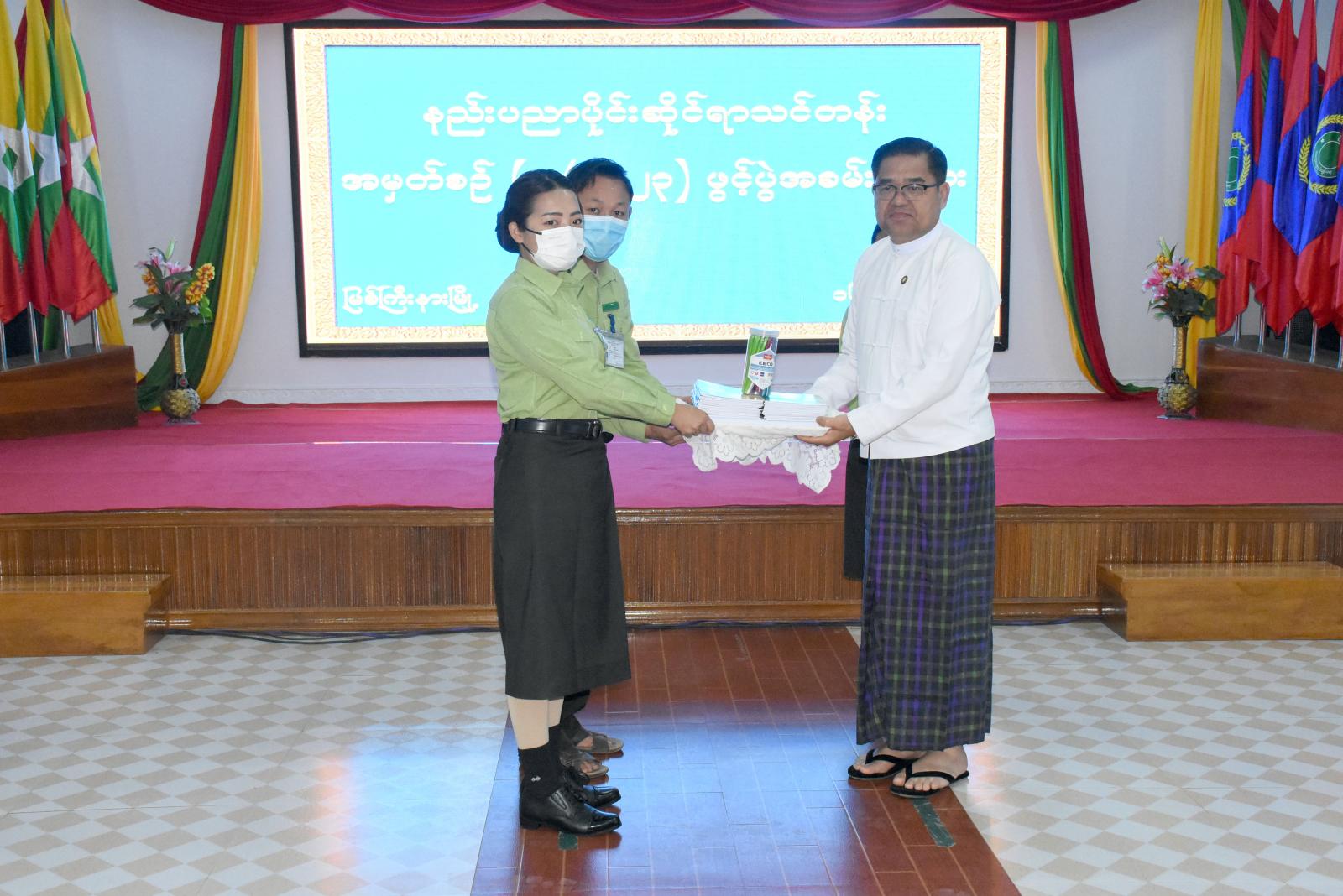 ယင်းနောက် ပြည်နယ်ဝန်ကြီးချုပ်က ဇန်နဝါရီ ၁၆ ရက်နေ့မှ ၁၉ ရက်နေ့အထိ (၄)ရက်ကြာ ဖွင့်လှစ်သွားမည့် သင်တန်းအား တက်ရောက်ကြမည့် သင်တန်းသား/သင်တန်းသူ (၂၃)ဦးတို့အား သင်တန်းအထောက်အကူပြု စာရေးကိရိယာပစ္စည်းများကို ထောက်ပံ့ပေးအပ်ခဲ့သည်။