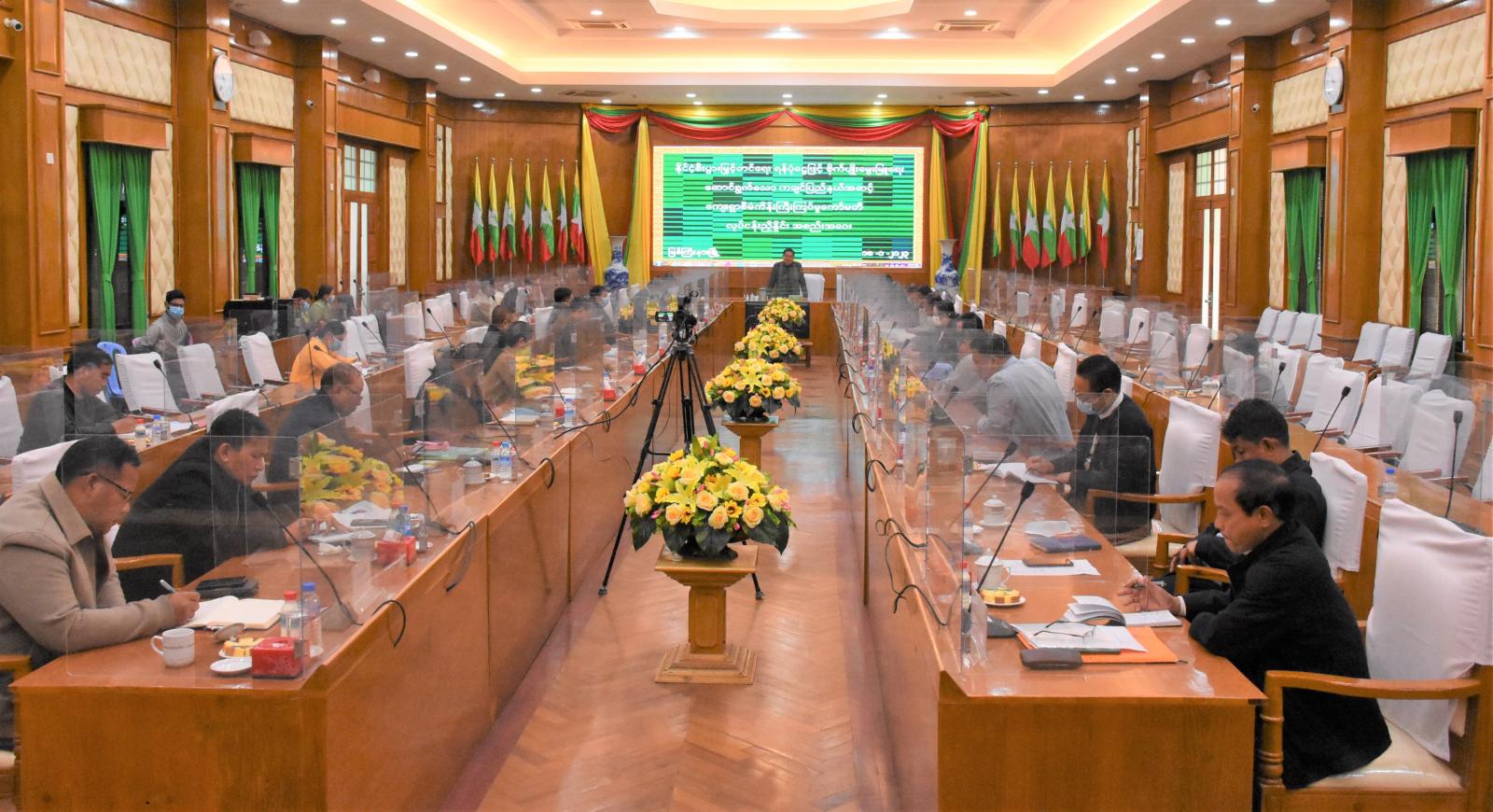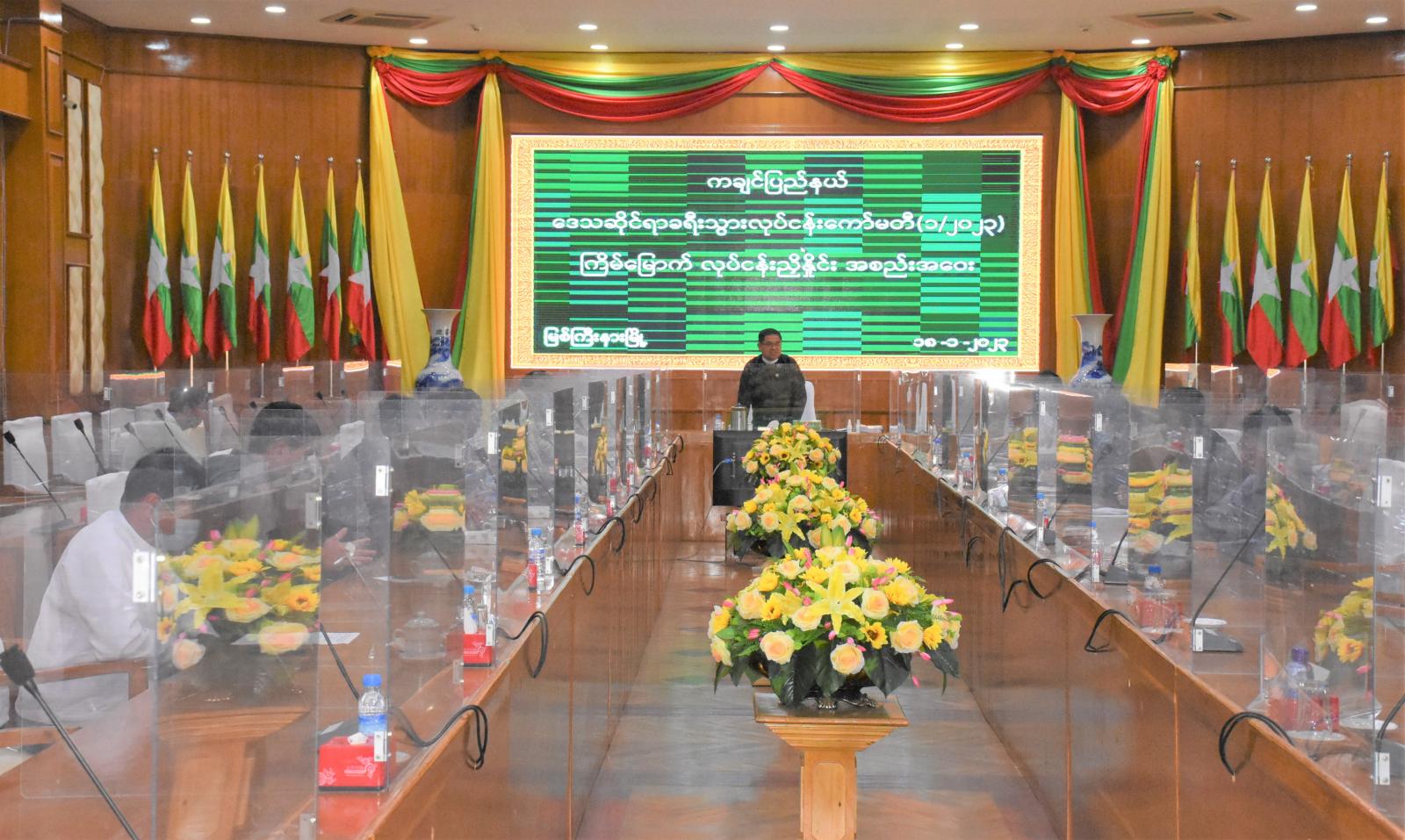 နိုင်ငံ့စီးပွားမြှင့်တင်ရေးရန်ပုံငွေဖြင့် ပြည်နယ်စီးပွားမြှင့်တင်ရေးအတွက် စိုက်ပျိုးမွေးမြူရေးနှင့် ကုန်ထုတ်လုပ်မှုလုပ်ငန်းများ ဆောင်ရွက်သွားမည့် ကျေးရွာများတွင် လုပ်ငန်းကဏ္ဍအလိုက် ရန်ပုံငွေများ မတည် ထောက်ပံ့ထားရှိ အခြေအနေနှင့် ဆက်လက်မတည် ထောက်ပံ့သွားမည့် လုပ်ငန်းများအတွက် နိုင်ငံစီးပွားမြှင့်တင်ရေး ရန်ပုံငွေဖြင့် စိုက်ပျိုးမွေးမြူရေးဆောင်ရွက်သော ပြည်နယ်အဆင့် ကျေးရွာစီမံကိန်းကြီးကြပ်မှုကော်မတီ၏ လုပ်ငန်းညှိနှိုင်းအစည်းအဝေးကို ယမန်နေ့နံနက် ၁၀ နာရီ က ပြည်နယ်အစိုးရအဖွဲ့ရုံး မလိခခန်းမ၌ ကျင်းပပြုလုပ်ခဲ့သည်။