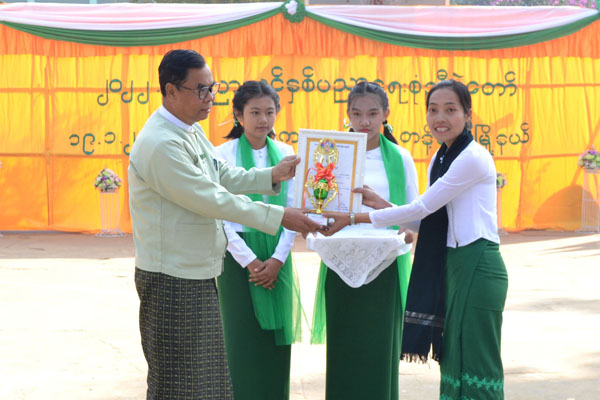 ယင်းနောက် ကျောင်းသား၊ ကျောင်းသူများက တိုင်ရင်းသားရိုးရာအကများ၊ တေးသရုပ်ဖော်အကများ အကပဒေသာများဖြင့် တင်ဆက်ကပြကြကာ ပညာရည်ချွန်ဆု ရရှိကြသူများအား တာဝန်ရှိသူအသီးသီးတို့က ဂုဏ်ပြုလက်မှတ်နှင့် ဂုဏ်ပြုဆုများကို ပေးအပ်ချီးမြှင့်ခဲ့ကြကြောင်း သိရသည်။