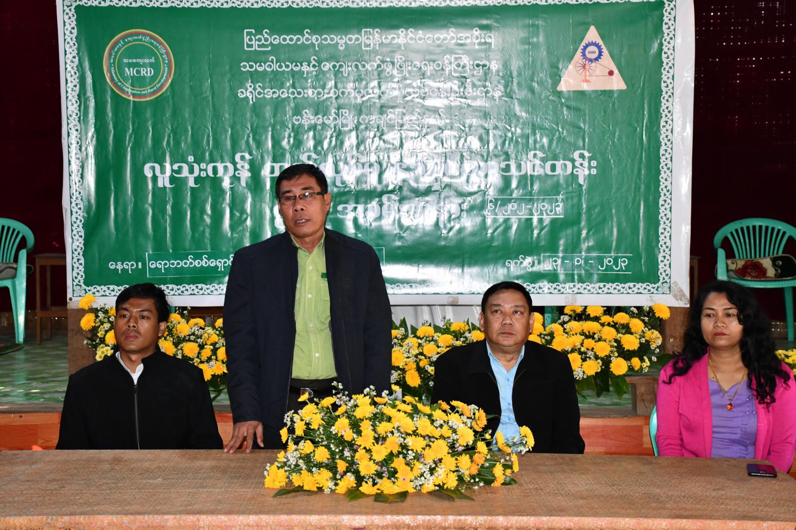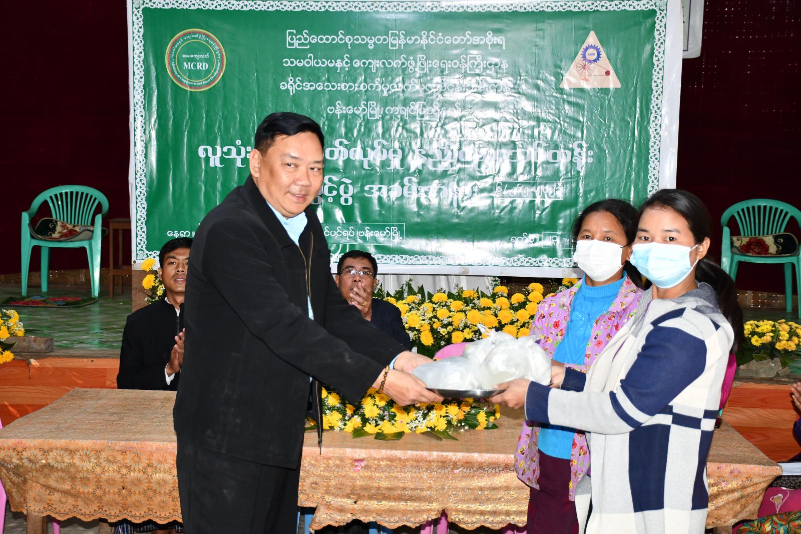 ထို့နောက် ခရိုင်အသေးစားစက်မှုလက်မှုလုပ်ငန်းဦးစီးဌာနမှ ခရိုင်ဦးစီးမှူး ဦးအောင်တင်စိုးက ယခုဖွင့်လှစ်မည့်သင်တန်းတွင် ဘက်စုံသုံးဆပ်ပြာရည်၊ပန်းကန်ဆေးဆပ်ပြာ၊ အဝတ်လျှော်ဆပ်ပြာ ၊ ရေချိုးဆပ်ပြာ၊ လက်ဆေးဆပ်ပြာ၊ ခေါင်းလျှော်ရည်၊ ဆပ်ပြာခရင်မ်၊ အဝတ်လျှော်မွှေးရည်၊ မှန်ကြည်ဆေး၊ မျက်နှာသစ်ဆပ်ပြာခဲအမျိုးမျိုးစုစုပေါင်း လူသုံးကုန်ပစ္စည်း(၁၀)မျိုး သင်ကြားပို့ချ ပေးသွားမည်ဖြစ်ကြောင်း၊ သင်တန်းသူများအနေဖြင့် သင်တန်းကို ပြီးဆုံးသည်အထိတက်ရောက် စေလိုကြောင်း၊ နည်းပညာများကို တတ်မြောက်သည်အထိ လေ့လာသင်ယူစေလိုကြောင်း သင်တန်းနှင့်ပတ်သက်၍ ဆွေးနွေးပြောကြားခဲ့ပြီး ခရိုင်ကျေးလက်ဒေသ ဖွံ့ဖြိုးတိုးတက်ရေးဦးစီးဌာနမှ ခရိုင်ဦးစီးမှူး ဦးတင်အောင်သန်းက သင်တန်းအတွက် ကုန်ကြမ်းပစ္စည်းများကို သင်တန်းသူများထံ ပေးအပ်ခဲ့သည်။