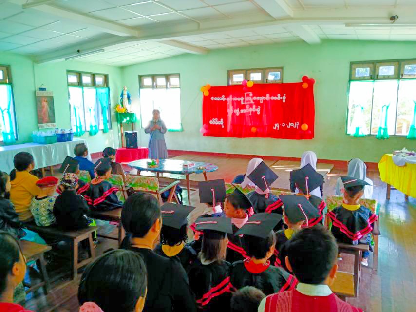 ဆက်လက်၍ မူကြိုကလေးငယ်များ၏ တေးသရုပ်ဖော်သီဆိုကပြဖျော်ဖြေခြင်း၊ တာဝန်ရှိသူများနှင့် မိဘများက မူကြိုကလေးငယ်များကို လက်ဆောင်ပစ္စည်းများပေးအပ်ခြင်း၊ မိဘများကိုယ်စား ဆရာမနော်ဒိုနီးရှာက ကျေးဇူးတင်စကားပြန်လည်ပြောကြားခဲ့ပြီး မာသာရ်ကြီးပေးပေ၏ ဦးဆောင်ဆုတောင်းခြင်းဖြင့် အခမ်းအနားကို ရုပ်သိမ်းခဲ့ကြောင်းသိရသည်။
