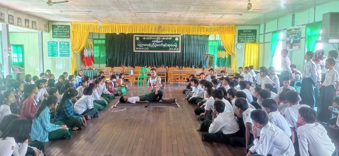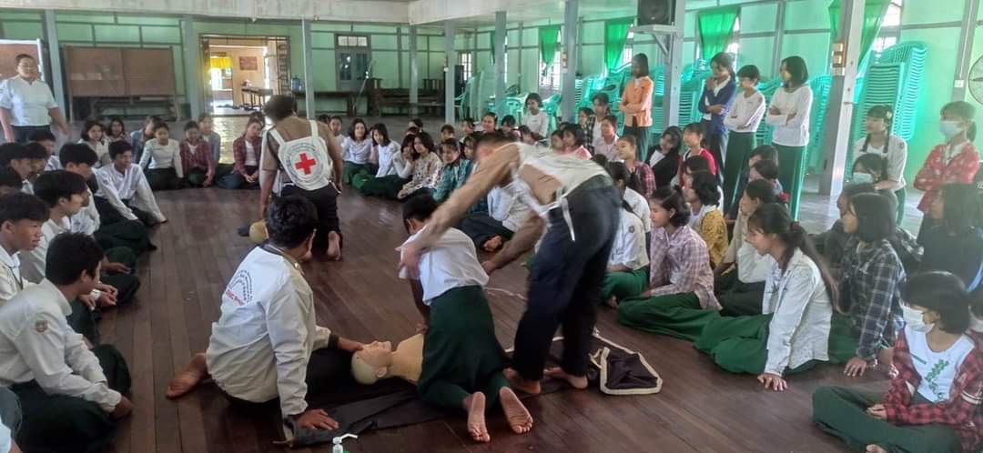 ရှေ့ဦးစွာ မြို့နယ်ကြက်ခြေနီအသင်းခွဲတပ်ဖွဲ့မှူး ဒေါ်ခင်မိုးလွင်က ကျောင်းကြက်ခြေနီအသင်းခွဲဖွဲ့စည်းရခြင်း၏ ရည်ရွယ်ချက်အားပြောကြားရာတွင် ကျောင်းတွင် ကြက်ခြေနီအသင်းခွဲငယ်များဖွဲ့စည်းခြင်းဖြင့် ဆောင်ရွက်ရမည်လုပ်ငန်းတာဝန်များ၊ ရရှိလာမည့်အကျိုးကျေးဇူးများ ကြက်ခြေနီအသင်းဖြစ်ပေါ်လာပုံ ကြက်ခြေနီအကြောင်းသိကောင်းစရာများအား ရှင်းလင်းပြောကြားပြီးနောက် တပ်ဖွဲ့ဝင်များမှ ကြက်ခြေနီအသင်း၏ ရှေ့ဦးပြုစုနည်းလုပ်ငန်းများ အရေးပေါ်လူနာပြုစုနည်းများကို ကျောင်းသား၊ ကျောင်းသူများအား လက်တွေ့သရုပ်ပြသပေးခြင်းများ ပြုလုပ်ဆောင်ရွက်ပေးခဲကြောင်း သိရသည်။