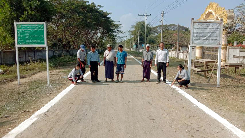 အဆိုပါ သဲကျောက်လမ်းခင်းခြင်း လုပ်ငန်းဆောင်ရွက်ရာတွင် အရှည်ပေ ၁၆၅၀ ပေ၊ အကျယ် (၁၂)ပေ နှင့် အမြင့် (၆) လက်မဖြင့် ကျေးရွာဖွံ့ဖြိုးတိုးတက်ရေးလုပ်ငန်း (VDP)စီမံကိန်းရန်ပုံငွေကျပ် သိန်း(၁၀၀)နှင့် ကျေးရွာလူထုထည့်ဝင်ငွေကျပ် (၂၉)သိန်း စုစုပေါင်းငွေကျပ်(၁၂၉)သိန်းကျော်ဖြင့် နိုဝင်ဘာလ (၁၀) ရက်က လုပ်ငန်းများစတင်ဆောင်ရွက်ခဲ့ကြရာ ဇန်နဝါရီလ ၁၈ ရက်တွင် သဲကျောက်ခင်းခြင်း လုပ်ငန်းဆောင်ရွက်မှုအခြေအနေမှာ ၁၀၀ ရာခိုင်နှုန်းထိ ပြီးစီးပြီဖြစ်၍ မြို့နယ်ကျေးလက်ဒေသဖွံ့ဖြိုးတိုးတက်ရေးဦးစီးဌာနမှ မြို့နယ်ဦးစီးမှူး ဦးမြသိန်းဝင်းနှင့် တာဝန်ရှိသူများက မြေပြင်ကွင်းဆင်းကြည့်ရှုစစ်ဆေးကြပြီး လုံးစန့်ကျေးရွာကော်မတီဝင်များမှ လုပ်ငန်းများဆောင်ရွက်ပြီးစီးမှု အခြေအနေများကို ရှင်းလင်းတင်ပြခဲ့ကြသည်။