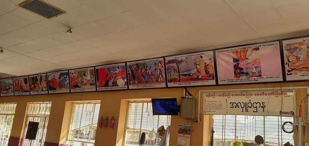 ဧရာဝတီတိုင်းဒေသကြီး၊ ဖျာပုံခရိုင်၊ ဘိုကလေးမြို့နယ်၏ အထင်ကရကျက်သရေဆောင် စေတီမြတ်ကြီးဖြစ်သည့် ရန်ပြေမာန်ပြေ အောင်စကြာစေတီတော်မြတ်ကြီး၏ အဝင်မုခ် ဆယ်ပြားတန်ဆောင်းတော်ကြီးအတွင်း၌ သာသနာ့အနွယ်ဝင် ဒါယကာ၊ ဒါယိကာမများ စုပေါင်း၍ ဗုဒ္ဓဝင်ရုပ်စုံကားချပ်များ လှူဒါန်းချိတ်ဆွဲထားရှိသည်။