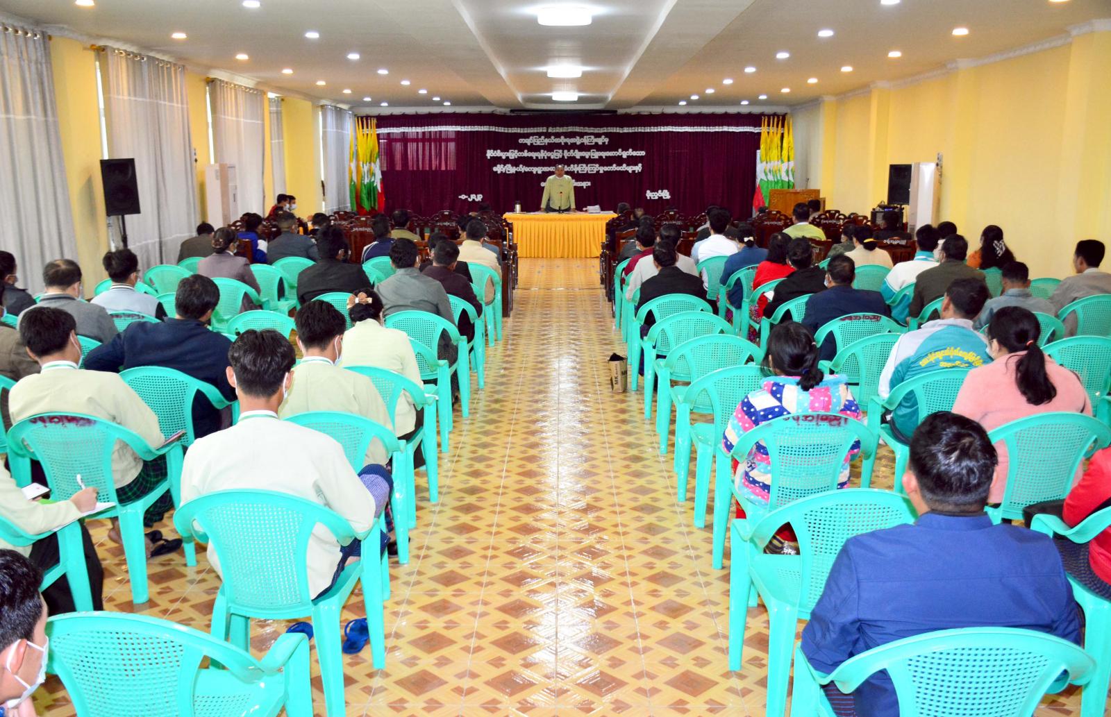 ထို့နောက် အစည်းအဝေးသို့ တက်ရောက်လာကြသည့် ခရိုင်/မြို့နယ်စီမံအုပ်ချုပ်ရေး အဖွဲ့ဝင်များ၊ ဌာနဆိုင်ရာများမှ သက်ဆိုင်ရာလုပ်ငန်းကဏ္ဍများအလိုက် ဆောင်ရွက်ထားရှိမှု အခြေအနေများနှင့် ရှေ့လုပ်ငန်းဆောင်ရွက်ရမည့် အခြေအနေများကို သက်ဆိုင်ရာဌာနများမှ တာဝန်ရှိသူများက အသီးသီးဆွေးနွေး တင်ပြကြရာ ခရိုင်အုပ်ချုပ်ရေးမှူးက လိုအပ်သည်များကို ပူးပေါင်းညှိနှိုင်း ဆောင်ရွက်ပေးခဲ့ကြောင်း သိရသည်။