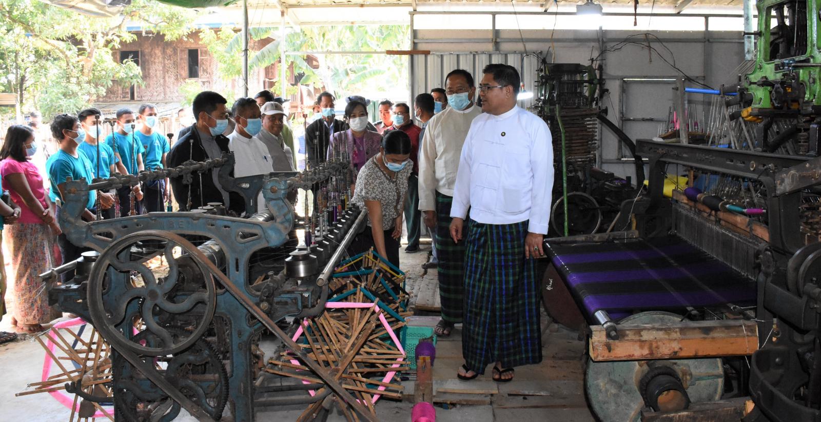 ရှေးဦးစွာ ပြည်နယ်ဝန်ကြီးချုပ်ဦးခက်ထိန်နန်နှင့် ပြည်နယ်ဝန်ကြီးများ၊ ပြည်နယ်အဆင့် ဌာနဆိုင်ရာ တာဝန်ရှိသူများသည် ဝိုင်းမော်မြို့နယ် အမှတ်(၁)ရပ်ကွက်၊ (ထော့ရှယ်) စက်ယက္ကန်းရုံတွင် ရိုးရာအဝတ်အထည်များနှင့် အထည်အမျိုးမျိုး ယက်လုပ်နေမှုများအား ကြည့်ရှုစစ်ဆေးပြီး လိုအပ်သည့်များ ကူညီထောက်ပံ့မှုများ ဆောင်ရွက်ပေးနိုင်ရေး တာဝန်ရှိသူများနှင့် ပေါင်းစပ်ညှိနှိုင်း ဆောင်ရွက်ပေးခဲ့သည်။