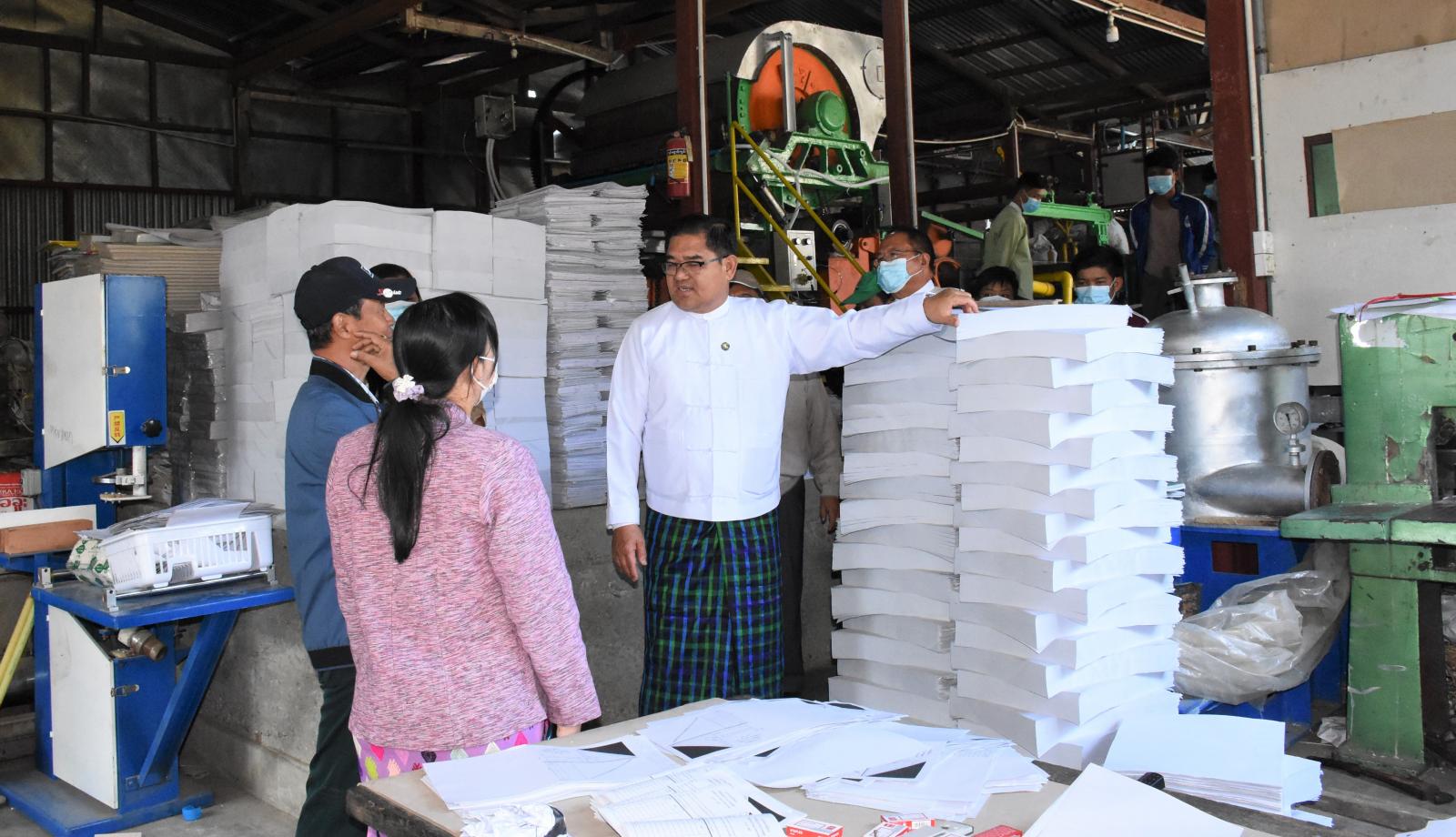 ထိုမှတစ်ဆင့် မြစ်ကြီးနားမြို့ စက်မှုဇုံရပ်ကွက်ရှိ ဖြိုးဝေဝေစက္ကူနှင့် စာအုပ်ထုတ်လုပ်ရေး သမဝါယမအသင်းလီမိတက်တွင် နိုင်ငံ့စီးပွားမြှင့်တင်ရေး မတည်ရန်ပုံငွေဖြင့် ဒေသတွင်း ပထမဆုံးအဖြစ် နှစ်ဘက်ချောစာအုပ်များ ထုတ်လုပ်နိုင်ရေးအတွက် ဝယ်ယူထားသည့် စက္ကူစက်အသစ်များ တပ်ဆင်နေမှုနှင့် စက်ရုံလည်ပတ်နေမှု အခြေအနေများအား ကွင်းဆင်းကြည့်ရှုစစ်ဆေးပြီး လိုအပ်သည်များ ထပ်မံကူညီဆောင်ရွက်ပေးနိုင်ရေး တာဝန်ရှိသူများနှင့် ပေါင်းစပ်ညှိနှိုင်း ဆောင်ရွက်ပေးခဲ့သည်။