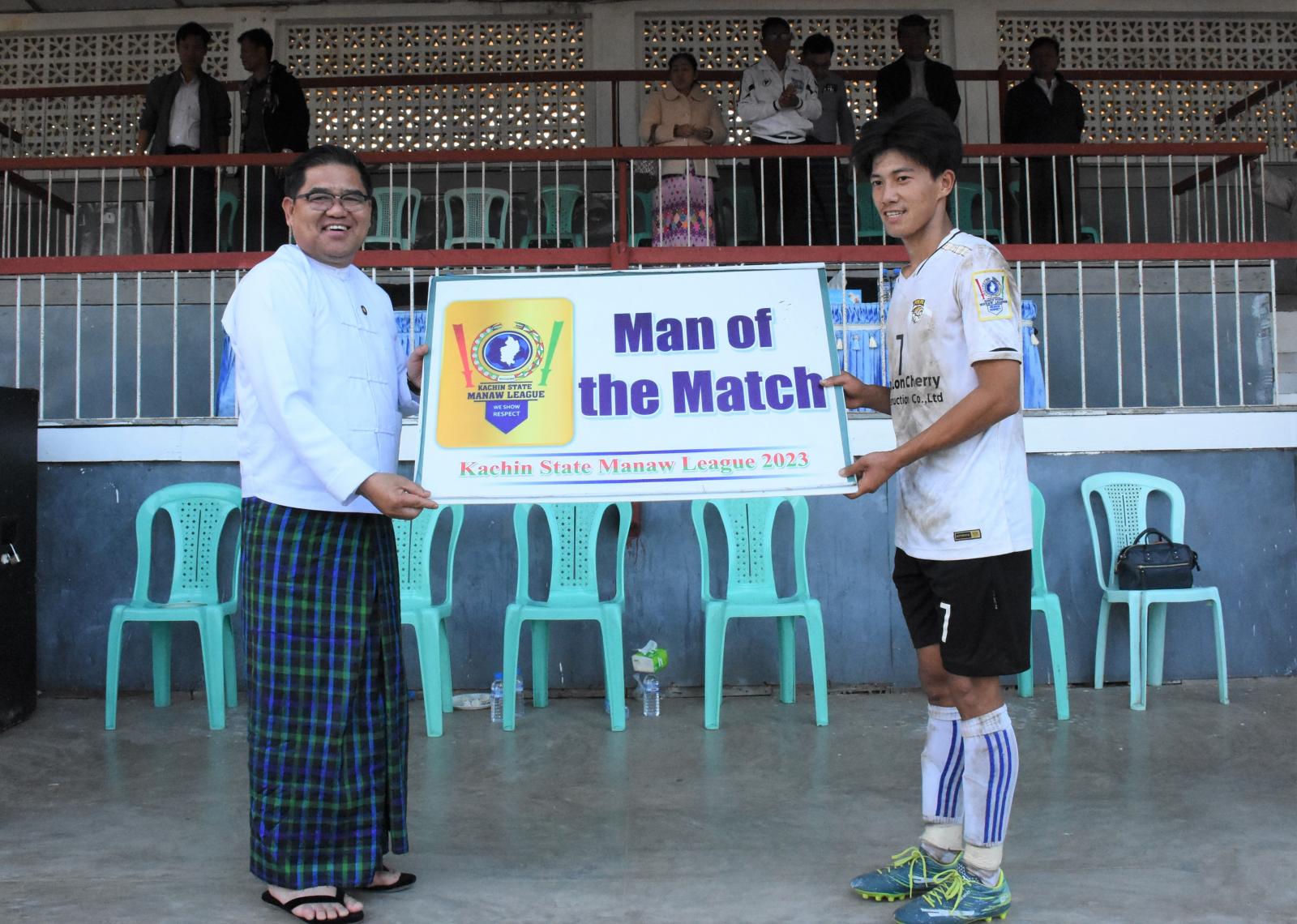 ထိုမှတစ်ဆင့် ပြည်နယ်ဝန်ကြီးချုပ်နှင့်အဖွဲ့သည် မြစ်ကြီးနားခရိုင် ငြိမ်းချမ်းသာယာ ဘောလုံးကွင်း၌ ဒေသခံစီးပွားရေးလုပ်ငန်းရှင်များက ကြီးမှူး၍ ဇန်နဝါရီလ ၁၆ ရက်နေ့မှ စတင်၍ ဒုတိယအကြိမ်မြောက်ဒေသတွင်း ဘောလုံးအသင်း(၇)သင်းဖြင့် ပြုလုပ်ကျင်းပ လျက်ရှိသော မနောလိဂ်(အလွတ်တန်း) အမှတ်ပေးဖလား ဘောလုံးပြိုင်ပွဲ (၉)ပွဲစဉ် အဖြစ် အော်စတား (All Star) အသင်းနှင့် ပူတာအို(PTO) အသင်းတို့၏ ယှဉ်ပြိုင်ကစားနေမှုကို တက်ရောက်ကြည့်ရှုအားပေးခဲ့ကြပြီး ပူတာအို (PTO) အသင်းအသင်းက (၂) ဂိုး (၁) ဂိုးဖြင့်အနိုင်ရရှိရာ ပြည်နယ်ဝန်ကြီးချုပ်နှင့် တာဝန်ရှိသူများက အဆိုပါပွဲစဉ်အတွင်း man of the match ဆုရရှိသည့် ဘောလုံးကစားသမားနှင့် Fitness Dance ဖြင့် ဖျော်ဖြေခဲ့ကြသူများအား ဂုဏ်ပြုဆုငွေများ ပေးအပ်ချီးမြှင့်ခဲ့ကြကြောင်း သိရှိရသည်။