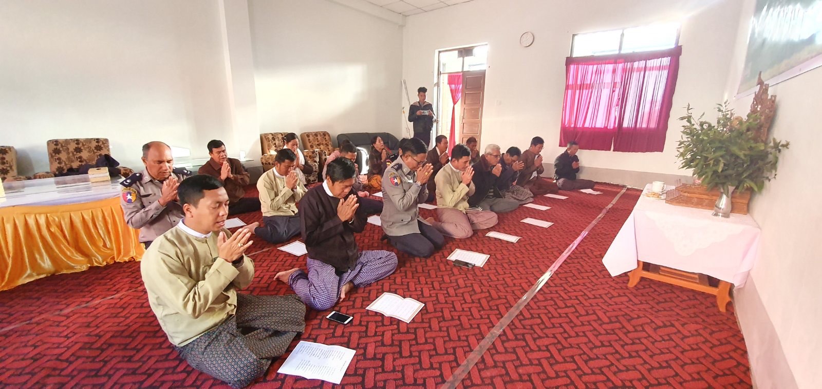 အလားတူခရိုင်အုပ်ချုပ်ရေးမှူး ဦးအောင်ချမ်းငြိမ်း၊ မြို့နယ်အုပ်ချုပ်ရေးမှူး ဦးဖြိုးဝင်းသန်းတို့ ဦးဆောင်ပါဝင်သည့် ဗုဒ္ဓဘာသာဌာနဆိုင်ရာ (၁၈)ဦးမှလည်း တီးတိန်ခရိုင် အထွေထွေအုပ်ချုပ်ရေးဦးစီးဌာန၊ ဘုရားခန်းမတွင် အပြင်အောင်ခြင်း (၈)ပါး လင်္ကာရွတ် ဖတ်ပူဇော်ပွဲအား နံနက် (၀၈၁၀)နာရီအချိန်မှ (၀၈၃၀)အချိန်ထိ ရွတ်ဖတ် ပူဇော်ခဲ့ကြကြောင်း သိသည်။