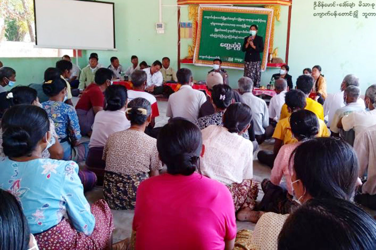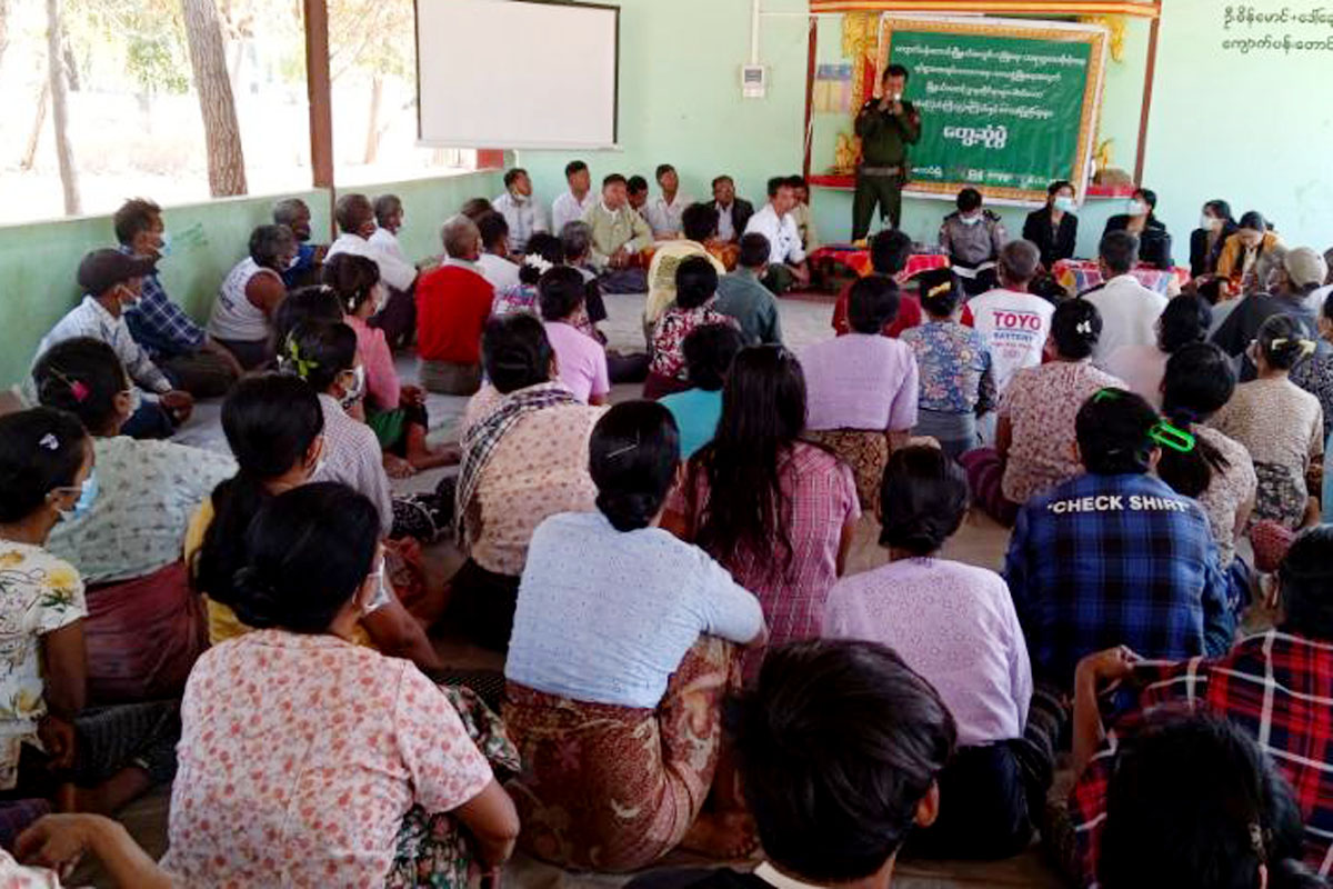 ထို့သို့ တွေ့ဆုံရာတွင် မြို့နယ်အထွေထွေအုပ်ချုပ်ရေးဦးစီးဌာန၊ ဒုတိယမြို့နယ်အုပ်ချုပ်ရေးမှူး ဦးသန်းဇော်ဦးနှင့်ဌာနဆိုင်ရာတာဝန်ရှိသူ များပူးပေါင်းပါဝင်၍ ဒေသဖွံ့ဖြိုးရေး၊ တရားဥပဒေစိုးမိုးရေးနှင့် နယ်မြေအေးချမ်းတည်ငြိမ်ရေး၊ လူမှုရေး၊ စီးပွားရေးနှင့် စိုက်ပျိုး/မွေးမြူရေးလုပ်ငန်းများ ပိုမိုကောင်းမွန်ရေး အထောက်အကူဖြစ်စေရန် ကွင်းဆင်းလာရောက်ခြင်းဖြစ်ကြောင်းနှင့်မိမိတို့ ကျေးရွာလိုအပ်ချက်များ ကို ပွင့်ပွင့်လင်းလင်း တင်ပြဆွေးနွေးကြရန် အဖွင့်အမှာစကားပြောကြားသည်။ ဆက်လက်၍ မြို့နယ်စီမံအုပ်ချုပ်ရေးအဖွဲ့ဝင်များဖြစ်သည့် ဗိုလ်မှူး နောင်ထွန်းနီ၊ မြို့နယ်ရဲတပ်ဖွဲ့မှူး ရဲမှူးမျိုးမင်းတို့က နယ်မြေလုံခြုံရေး၊ တရားဥပဒေစိုးမိုးရေးနှင့် လောင်းကစားမှုပပျောက်ရေး လုပ်ငန်းဆိုင်ရာများကို ရှင်းလင်းပြောကြားကြသည်။ ယင်းနောက်အဖွဲ့ဝင်အဖြစ်လိုက်ပါလာကြသည့် မြို့နယ်ကော်မရှင်၊ စီမံကိန်း၊ ကျေးလက်ဒေသ ဖွံ့ဖြိုးတိုးတက်ရေး၊ ကျေးလက်လမ်းဦးစီးဌာန၊ ပညာရေး၊ ကျန်းမာရေး၊ ဆည်မြောင်းနှင့် ရေအသုံးချရေး၊ မြေယာစီမံခန့်ခွဲရေးနှင့်စာရင်း အင်းဦးစီးဌာန၊ စိုက်ပျိုးရေးဌာန၊ မြို့နယ် ပြန်/ဆက်၊ မီးသတ်ဦးစီးဌာနအစရှိသည့် ဌာနတာဝန်ရှိသူများက ဒေသဖွံ့ဖြိုးရေးပူးပေါင်း ဆောင်ရွက်နိုင်မည့် အခြေအနေများနှင့် ရွေးကောက်ပွဲဆိုင်ရာကိစ္စရပ်များကို ဒေသခံပြည်သူများအား အသိပေးရှင်းလင်းပြောကြား ကြသည်။ ယင်းနောက်တက်ရောက်လာသည့် ဒေသခံပြည်သူများ၏ မေးမြန်းတင်ပြမှုများကို သက်ဆိုင်ရာဌာနများနှင့် မြို့နယ်အထွေထွေအုပ်ချုပ်ရေးဦးစီးဌာန၊ ဒုတိယမြို့နယ်အုပ်ချုပ်ရေးမှူးတို့က ပြန်လည်ရှင်းလင်းဆွေးနွေးပြီး အခမ်းအနားကို ရုပ်သိမ်းလိုက်သည်။
