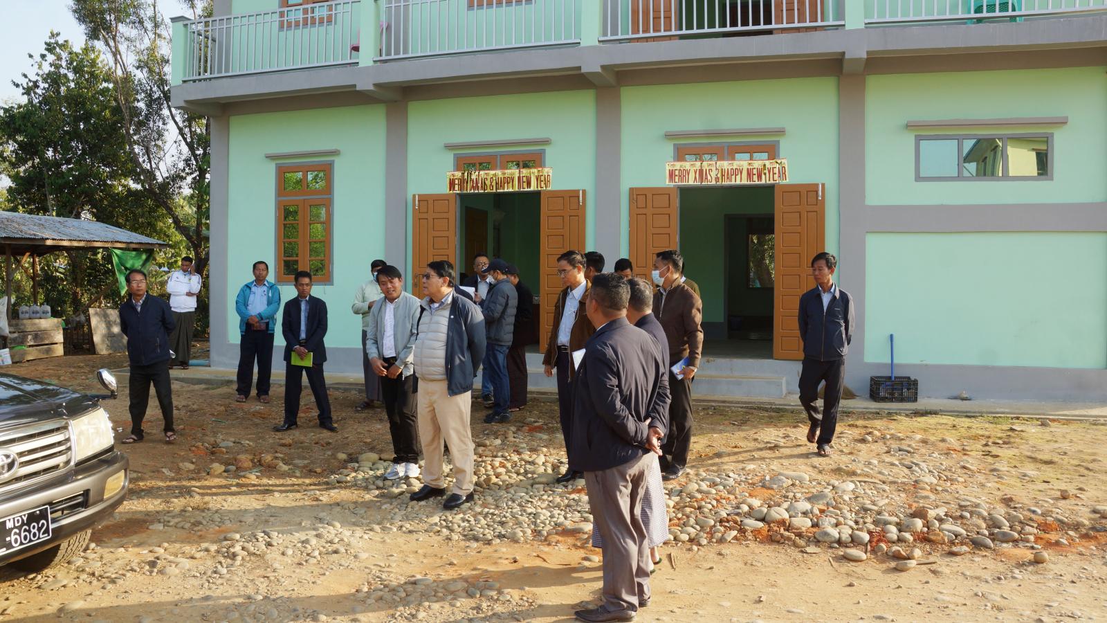 ရှေးဦးစွာ ပြည်နယ်၀န်ကြီးနှင့် တာ၀န်ရှိသူများသည် ၂၀၂၁ခုနှစ်၊ အောက်တိုဘာလမှ ၂၀၂၂-ခုနှစ် မတ်လအထိ (၆)လနှင့် ၂၀၂၂-၂၀၂၃ဘဏ္ဍာရေးနှစ်အတွင်း ပြည်ထောင်စုငွေလုံးငွေရင်း ခွင့်ပြုရန်ပုံငွေ ကျပ်သန်းပေါင်း (၁၀၅)သန်း ဖြင့် ဆောင်ရွက်ပြီးစီးခဲ့သည့် ခရိုင်လယ်ယာမြေ စီမံခန့်ခွဲရေးနှင့် စာရင်းအင်းဦးစီးဌာနရုံး အဆောက်အဦ အလျား ၄၀ပေ၊ အနံ(၃၀)ပေ၊ အမြင့်(၂၅)ပေ၊ သွပ်မိုး RC နှစ်ထပ် (ရေ၊ မီး၊ မိလ္လာအပါအ၀င်) အဆောက်အဦ တည်ဆောက်ရေးလုပ်ငန်း ပြီးစီးမှု အခြေအနေများကို ကြည့်ရှုစစ်ဆေးပြီး ပြည်နယ်၀န်ကြီးက ဖြည့်စွက်ဆောင်ရွက်ရမည့် လုပ်ငန်းလိုအပ်ချက်များကို ပေါင်းစပ် ညှိနှိုင်းပေးခဲ့သည်။