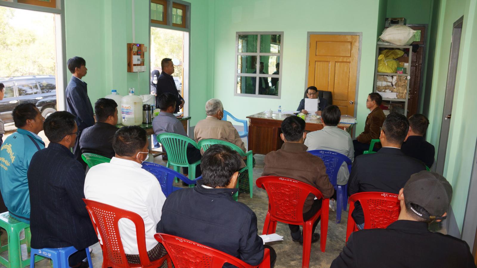ဆက်လက်၍ ပြည်နယ်၀န်ကြီးသည် စီမံကိန်းရေးဆွဲရေးဦးစီးဌာန ခရိုင်ဦးစီးမှူးရုံး အစည်းအဝေးခန်းမ၌ စီးပွားရေးရာ၀န်ကြီးဌာနအောက်ရှိ ဦးစီးဌာန၀န်ထမ်းများနှင့်တွေ့ဆုံအမှာစကားပြောကြားသည်။တွေ့ဆုံစဉ် ပြည်နယ်၀န်ကြီးက နိုင်ငံ့၀န်ထမ်းများ ဖြစ်သည်နှင့်အညီ ၀န်ထမ်းစည်းမျဉ်းစည်းကမ်းအတိုင်း လိုက်နာပြီး ဉပဒေ၊ လုပ်ထုံးလုပ်နည်း၊ အမိန့်၊ ညွှန်ကြားချက်များနှင့်အညီ လုပ်ငန်းဆောင်ရွက်ရန် လိုအပ်ကြောင်း၊ ယနေ့အကောင်အထည်ဖော် ဆောင်ရွက်လျက်ရှိသည့် နိုင်ငံ့စီးပွား မြှင့်တင်ရေးလုပ်ငန်းများတွင် ကျရာအခန်းကဏ္ဍမှ ပူးပေါင်းပါ၀င်ဆောင်ရွက်စေလိုကြောင်း ပြောကြားပြီး စီမံကိန်းရေးဆွဲရေးဦးစီးဌာန၊ မြန်မာ့စီးပွားဘဏ်၊ အခွန်ဦးစီးဌာနမှ ဦးစီးမှူးများက ဌာနအလိုက် လုပ်ငန်းဆောင်ရွက်ချက်များနှင့် လုပ်ငန်းလိုအပ်ချက်များကို ရှင်းလင်းတင်ပြကြရာ ပြည်နယ်၀န်ကြီးက လိုအပ်သည်များကို ပေါင်းစပ်ညှိနှိုင်း ပေးခဲ့ပြီး ၀န်ထမ်းများအတွက် ထောက်ပံ့ငွေများ ထောက်ပံ့ပေးအပ်သည်။