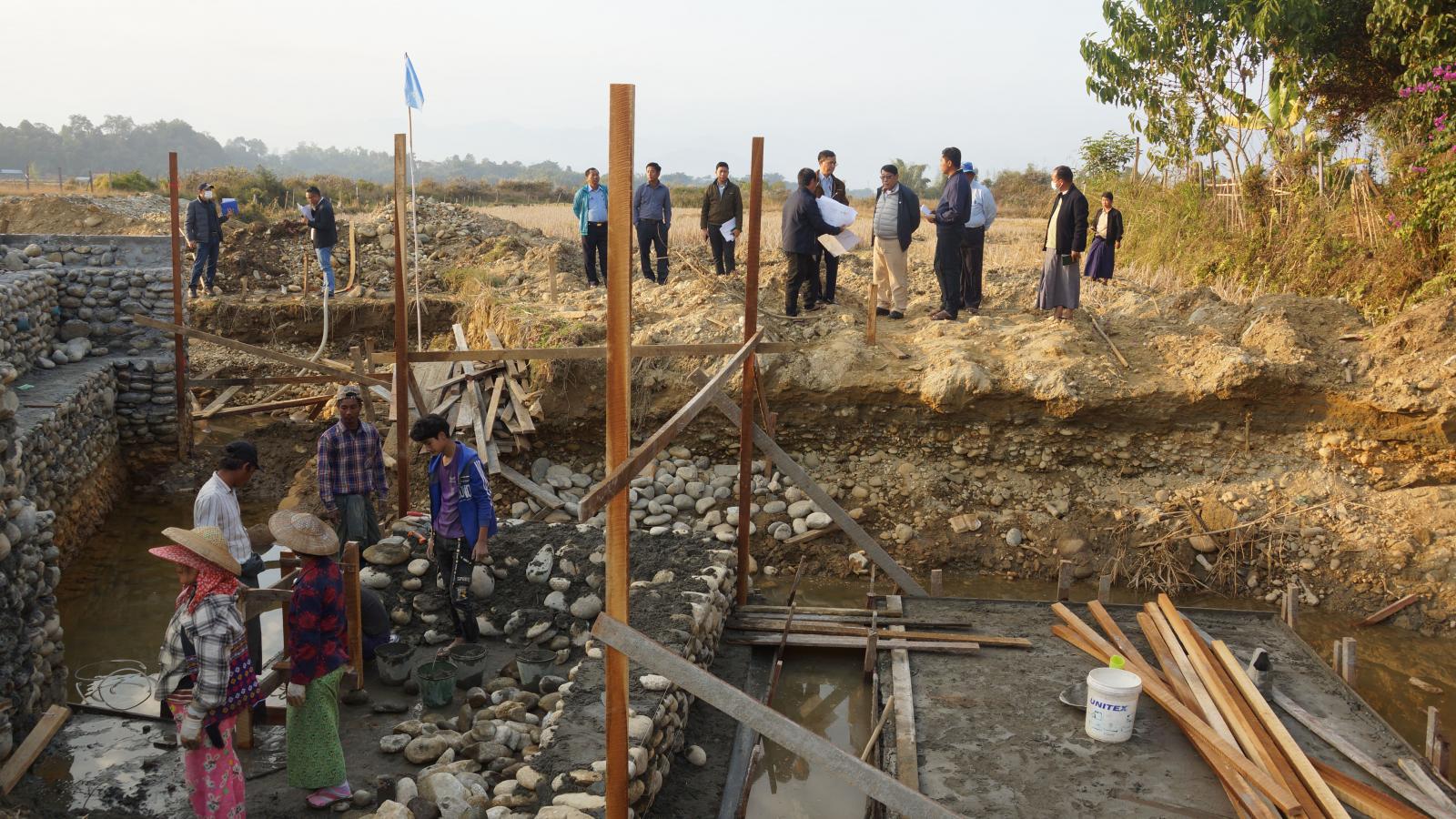 ထိုမှတဆင့် ပြည်နယ်၀န်ကြီးနှင့် တာ၀န်ရှိသူများသည် ဆည်မြောင်းနှင့် ရေအသုံးချမှုစီမံခန့်ခွဲ ရေးဦးစီးဌာန၏ ၂၀၂၂-၂၀၂၃ ဘဏ္ဍာရေးနှစ်ခွင့်ပြုရန်ပုံငွေ ကျပ်သန်းပေါင်း (၂၉၄)သန်းဖြင့် ပူတာအိုမြို့ လုံးစွတ်ရပ်ကွက်ရှိ လယ်မယ်ဝါချီရေလွှဲ ဆည်တည်ဆောက်ခြင်းနှင့် တူးမြောင်းတည်ဆောက်ခြင်း လုပ်ငန်းရှင်းလင်းဆောင်သို့ သွားရောက်ပြီး တာ၀န်ရှိသူများက လုပ်ငန်းဆောင်ရွက်ပြီးစီးမှု အခြေအနေများနှင့် လုပ်ငန်းလိုအပ်ချက်များအား ရှင်းလင်းတင်ပြကြရာ ပြည်နယ် ၀န်ကြီးက ဖြည့်စွက်ဆောင်ရွက်ရမည့် ကိစ္စရပ်များကို မေးမြန်းဆွေးနွေးခဲ့ကာ အဆိုပါလယ်မယ်ဝါချီကွင်းအတွင်း လယ် ဧက(၃၀၀)အတွက် အကျိုးပြု ရေလွှဲဆည် တည်ဆောက်ခြင်းလုပ်ငန်း ဆောင်ရွက်နေမှုများကို ကြည့်ရှုစစ်ဆေးပြီး သတ်မှတ်စံချိန်စံညွန်းနှင့်အညီ သတ်မှတ်ကာလအတွင်း အချိန်မီပြီးစီးရေးနှင့် လုပ်ငန်းခွင် အန္တရာယ်ကင်းရှင်းရေးတို့ကို မှာကြားခဲ့ကြောင်း သိရသည်။