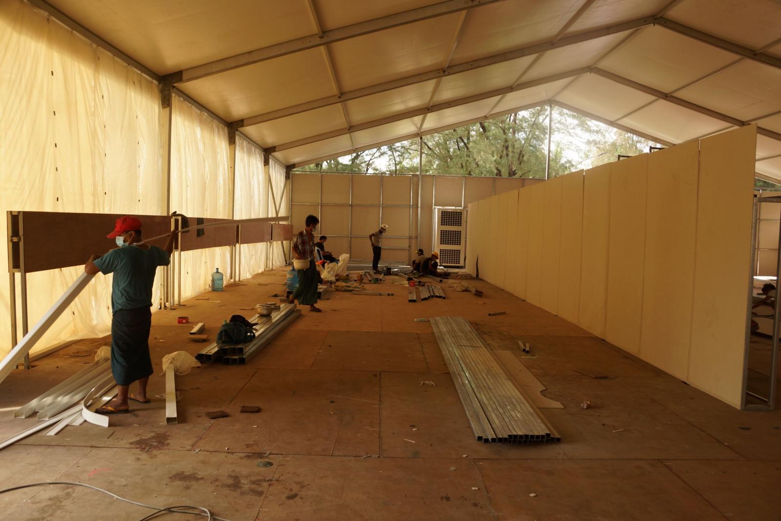သုဝဏ္ဏဘောလုံးကွင်း ဧရိယာဝန်းအတွင်း ကိုဗစ်-၁၉ အရေးပေါ်လူနာများအား အရေးပေါ်ကုသမှုပေးရန် High Dependency Unit (HDU) နှင့် Intensive Care Unit (ICU) တို့ပါဝင်သည့် ယာယီ အဆောက်အအုံများ တည်ဆောက်လျက်ရှိသည်။