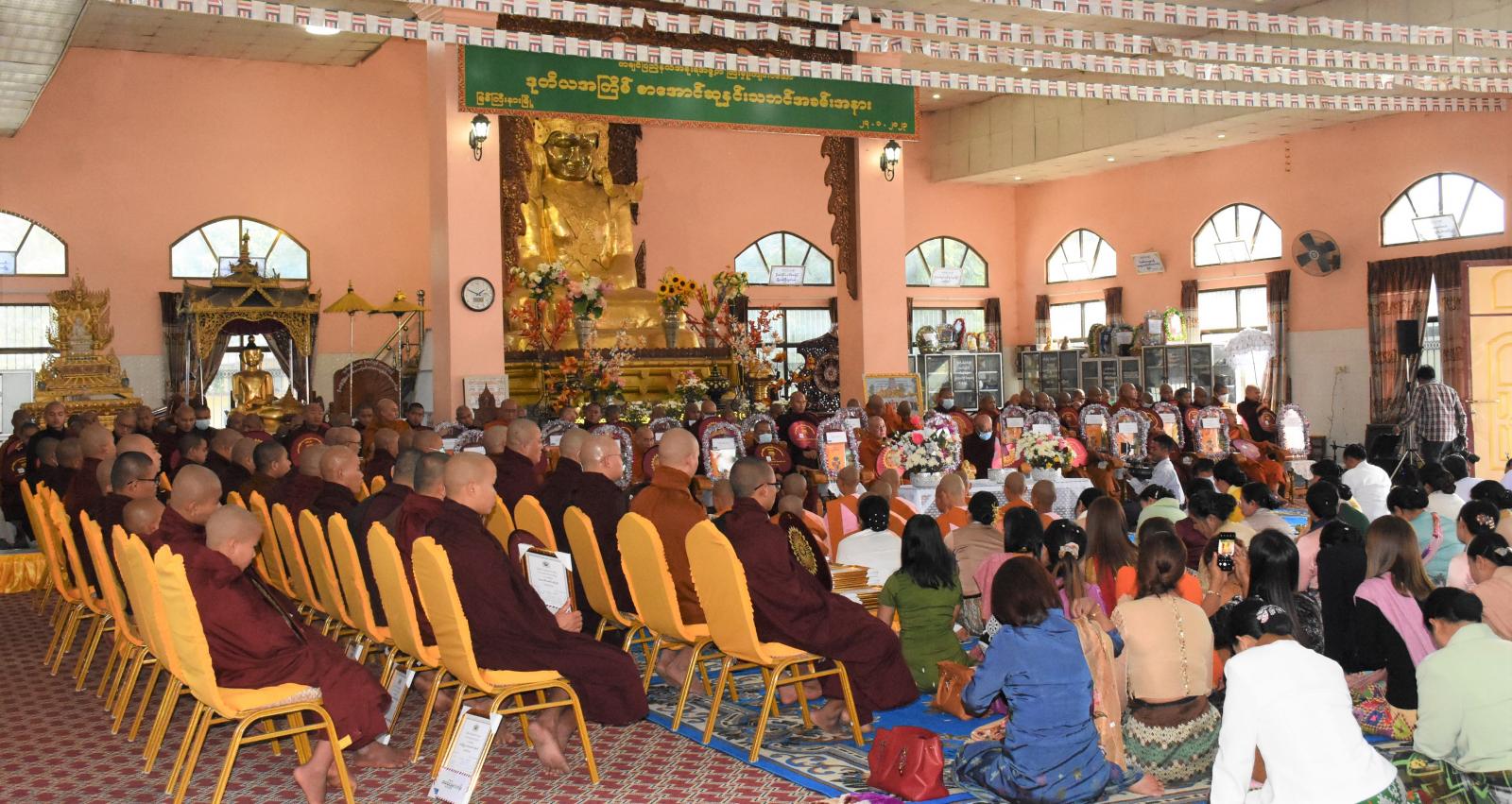 ၂၀၂၂ ခုနှစ်အတွင်း ကချင်ပြည်နယ်၊ မြစ်ကြီးနားစာဖြေဌာနတွင် အစိုးရဓမ္မာစရိယ၊ ပါဠိပထမပြန်၊ နိကာယ်၊ အဘိဓမ္မာနှင့် ဝိသုဒ္ဓိမင်္ဂစာမေး ပွဲအောင် သံဃာ (၁၀၂) ပါးနှင့် သီလရှင် ဆရာလေး (၁၄) ပါးတို့အား စာအောင်ဆုလက်မှတ်များနှင့် လှူဖွယ်ပစ္စည်း များ ဆက်ကပ် လှူဒါန်း ကြကာ လှူဒါန်းမှု အစုစုတို့အတွက် ရေစက်သွန်းချအမျှပေးဝေပြီးအခမ်းအနားကို ဗုဒ္ဓသာသနံ စိရံတိဋ္ဌတု (၃) ကြိမ်ရွတ်ဆို ဆုတောင်း၍ ရုတ်သိမ်းခဲ့သည်။