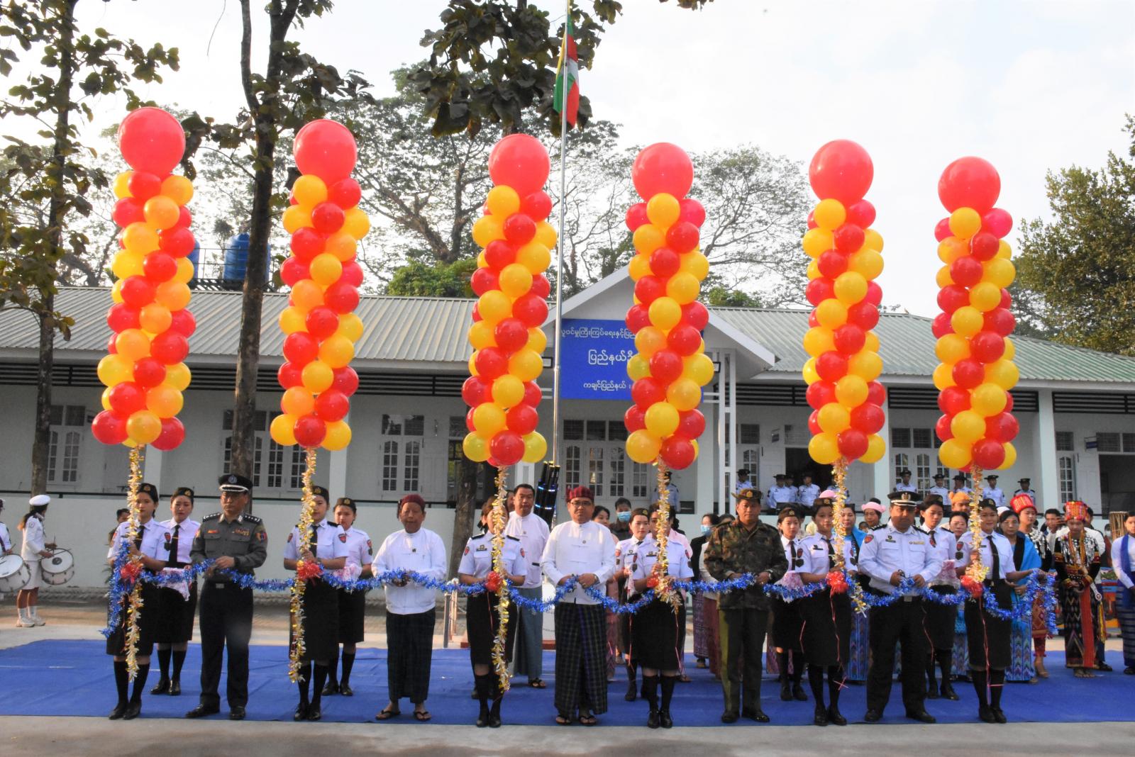 ဆက်လက်၍ ပြည်နယ်ဝန်ကြီးချုပ်၊ ပြည်နယ်တရားလွှတ်တော်တရားသူကြီးချုပ်၊ ပြည်နယ်လုံခြုံရေးနှင့် နယ်စပ်ရေးရာ ဝန်ကြီး၊ ပြည်နယ်လမ်းပန်းဆက်သွယ်ရေးဝန်ကြီးနှင့် လူမှုရေးရာဝန်ကြီးတို့ က အသစ်တည်ဆောက်ပြီးစီး သည့် အလျား ၂၇၀ ပေ၊ အနံ ၃၀ ပေ၊ အမြင့် ၁၂ ပေရှိ L Shape ပုံသဏ္ဍာန် တစ်ထပ်အဆောက်အဦးသစ်အား ဖဲကြိုးဖြတ် ဖွင့်လှစ်ပေးခဲ့ပြီး ရုံးအဆောက်အအုံ ဖွဲ့စည်းထားရှိမှုနှင့် လုပ်ငန်းဆောင်ရွက်နေမှုများအား လှည့်လည်ကြည့်ရှု စစ်ဆေး ခဲ့ကြသည်။