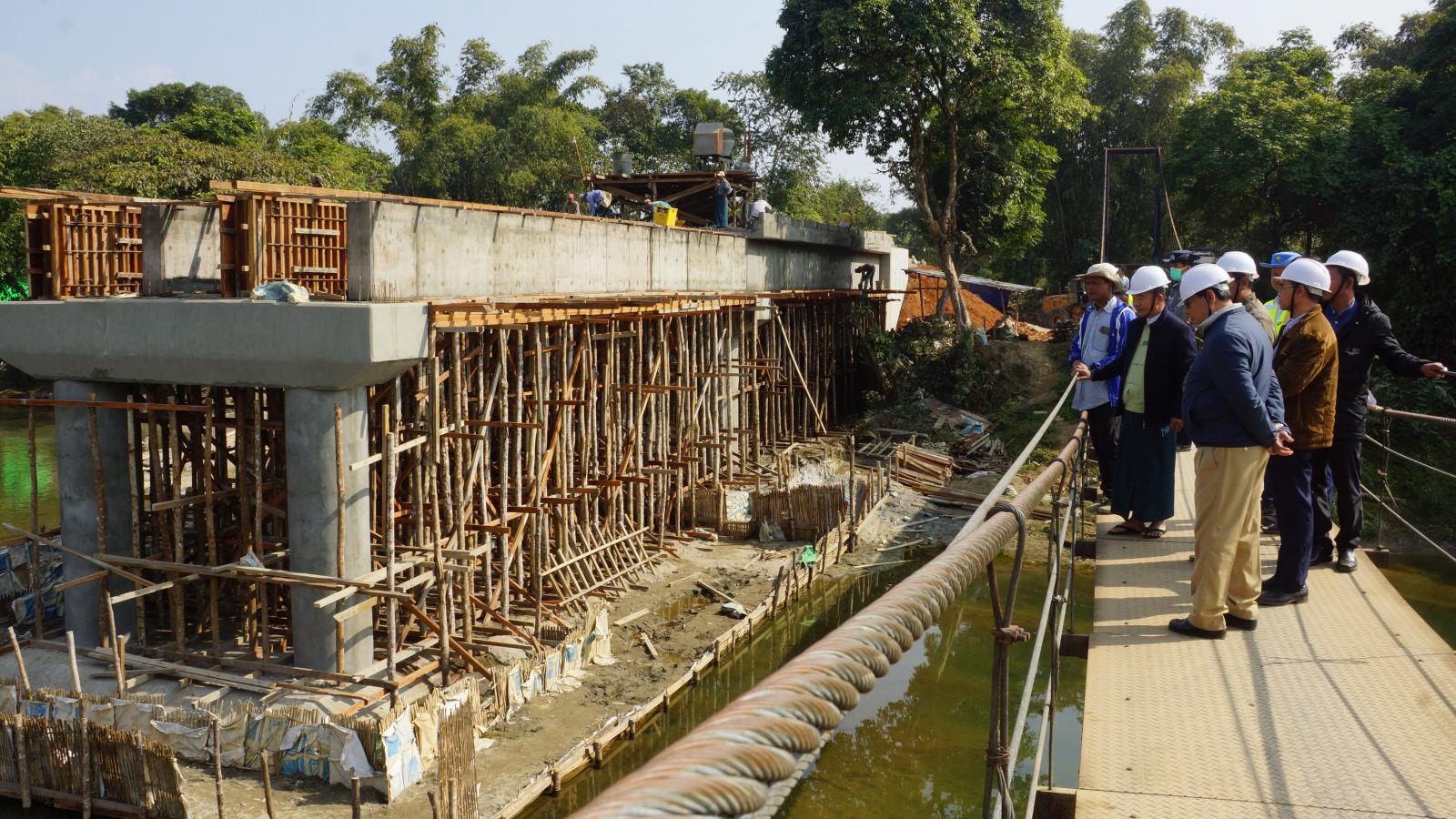 ထိုမှတဆင့် ပြည်နယ်ဝန်ကြီးသည် ပြည်နယ်/ခရိုင်အဆင့် တည်ဆောက်ရေးလုပ်ငန်းများ အရည်အသွေး စစ်ဆေးရေး အဖွဲ့ဝင်များနှင့် အတူ ကျေးလက်လမ်းဖွံ့ဖြိုးရေးဦးစီးဌာန၏ ၂၀၂၂-၂၀၂၃ ဘဏ္ဍာရေးနှစ် ခွင့်ပြုရန်ပုံငွေ ခန့်မှန်းလုပ်ငန်း တန်ဖိုးကျပ်သန်းပေါင်း (၁၀၈၀.၀၀)သန်းဖြင့် အရှည်(၂၄၀)ပေရှိ ပူတာအို မြို့နယ်၊ ပူတာအို-လယ်မယ်ဝါချီ-နမ်ရှယ်ကော့-မန်စေ-မန်စေခွန်လမ်း (ပူတာအိုလွင်ပြင်ပတ်လမ်း)ပေါ်ရှိ နမ့်ပလပ်ချောင်းကူးကွန် ကရစ်တံတား တည်ဆောက်ရေးလုပ်ငန်းခွင်သို့ သွားရောက်ပြီး ရှင်းလင်းဆောင်၌ ခရိုင်ကျေးလက်လမ်းဖွံ့ဖြိုးရေးဦးစီးဌာန ခရိုင်ဦးစီးမှူး ဦးဝင်းသန့်အောင်က တံတားတည်ဆောက်ရေး လုပ်ငန်းဆောင်ရွက်ချက်မှုများနှင့် ပတ်သက်၍ ရှင်းလင်း တင်ပြသည်။ ထို့နောက် ပြည်နယ်ဝန်ကြီးသည် တံတားတည်ဆောက်နေမှုအား ကြည့်ရှုစစ်ဆေးပြီး အဆိုပါ တံတားသည် ပူတာအိုလွင်ပြင်ပတ်လမ်းပေါ် တွင်ရှိခြင်း၊ ပူတာအိုမြို့နယ်အတွင်းရှိ ကျေးရွာ(၂၈)ရွာ၊ အိမ်ခြေ(၂၀၅၆)၊ လူဦးရေ (၁၀၉၄၀)ဦးအတွက် အကျိုးပြုခြင်း၊ လူမှုအခြေပြုခရီးသွားလုပ်ငန်းအတွက် အထောက်အကူပြုခြင်းတို့ကြောင့် စံချိန် စံညွှန်းနှင့် အညီ သတ်မှတ်ကာလအတွင်း အချိန်မီတည်ဆောက်ပြီးစီးရေးနှင့် လိုအပ်ချက်များကို ပေါင်းစပ်ညှိနှိုင်း ဆောင်ရွက်ပေးခဲ့ကြောင်း သိရသည်။
