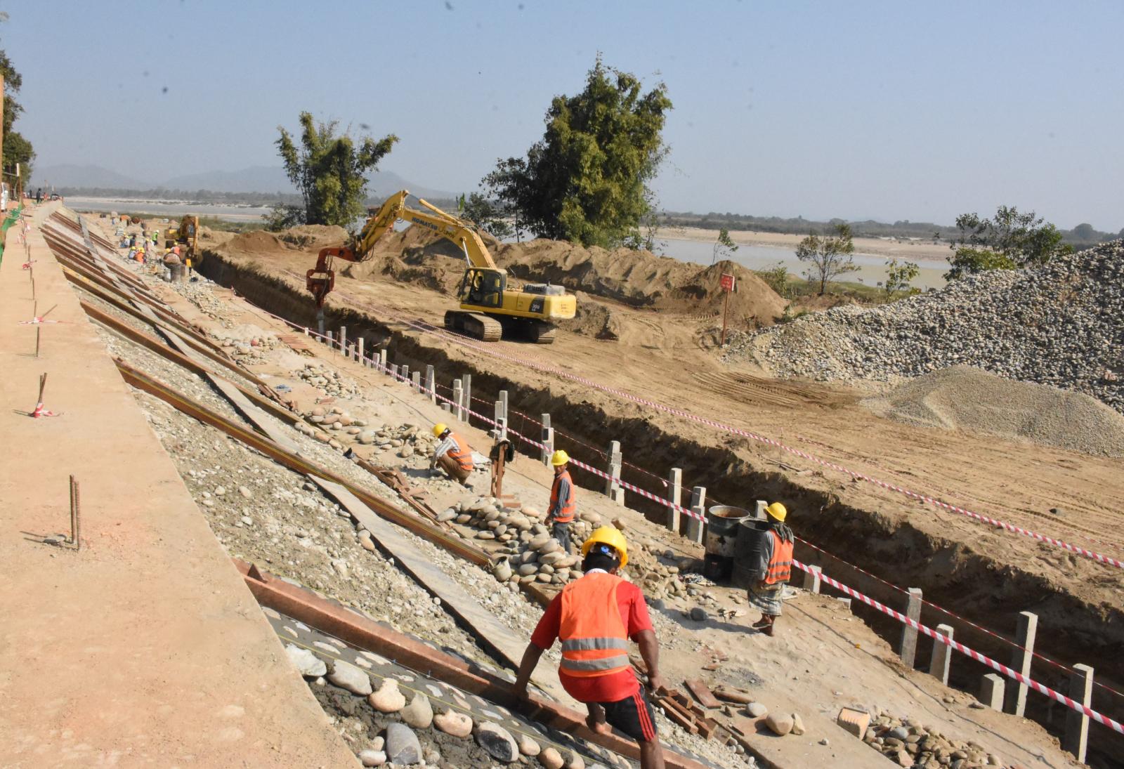 ကချင်ပြည်နယ်၊ မြစ်ကြီးနားမြို့ မြေနိမ့်ပိုင်းရပ်ကွက်များတွင် နှစ်စဉ်မိုးရာသီ၌ ဧရာဝတီမြစ်ရေ မြင့်တက်လာမှုနှင့် မိုးရွာသွန်းမှုများပြားပါက ရေကြီးရေလျှံမှုဖြစ်စဉ်များဖြစ်ပေါ် လေ့ရှိသဖြင့် ပြည်နယ်ဝန်ကြီးချုပ် ဦးခက်ထိန်နန်သည် ဧရာဝတီမြစ်ရိုးတစ်လျှောက် ရပ်ကွက်များအတွင်း ပြည်နယ်အစိုးရအဖွဲ့ ရန်ပုံငွေဖြင့် ကျောက်စီမြေထိန်းနံရံ တည်ဆောက်ခြင်းလုပ်ငန်း ဆောင်ရွက်နေမှုများကို ယနေ့ နံနက် ၉ နာရီခွဲက ကွင်းဆင်းစစ်ဆေးခဲ့သည်။